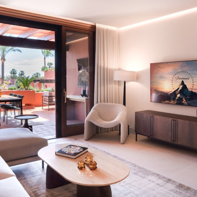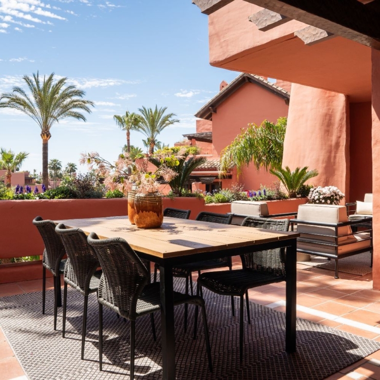 This luxury 3 bedroom apartment is located in the prestigious beachfront complex Torre Bermeja on the New Golden Mile, Estepona. The apartment features a fully furnished and fully fitted kitchen, perfect for those who love to cook. The open-plan living and dining area is bright and spacious, with large glass doors that lead out to the private terrace. The terrace offers a peaceful retreat with stunning garden, pool and partial sea views. Two bedrooms in this apartment are generously sized and come with fitted wardrobes, providing plenty of storage space. Two bedrooms including the master bedroom offer en-suite bathrooms, while the third bedroom has access to a separate bathroom. All bathrooms are in excellent condition and feature underfloor heating throughout. Residents of Torre Bermeja have access to a range of amenities, including a communal pool, a gym, and an indoor pool. The complex is gated and offers 24-hour security service, ensuring the safety and privacy of its residents. With its prime beachfront location, this apartment is just a short walk away from the sea and the beautiful beaches of Costa del Sol. It is also conveniently located near shops, restaurants, and schools, making it an ideal choice for families. Whether you’re looking for a permanent residence or a holiday home, this luxury apartment in Torre Bermeja offers the perfect combination of comfort, convenience, and luxury living.