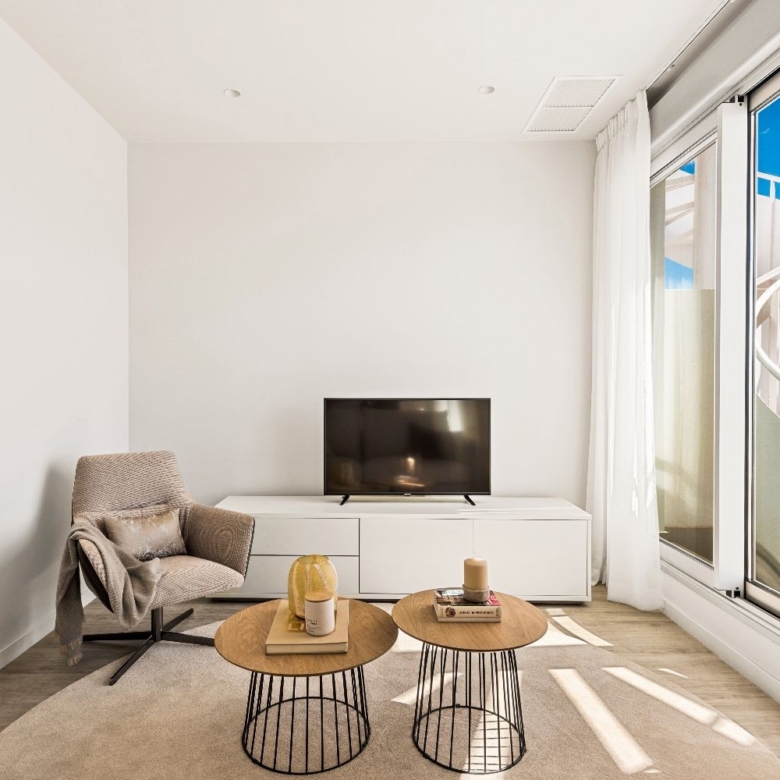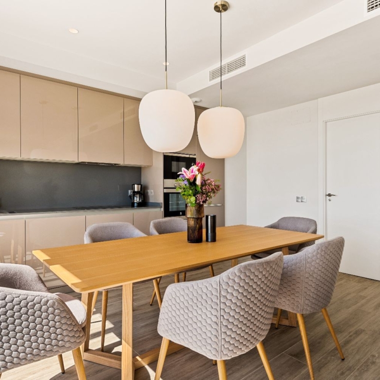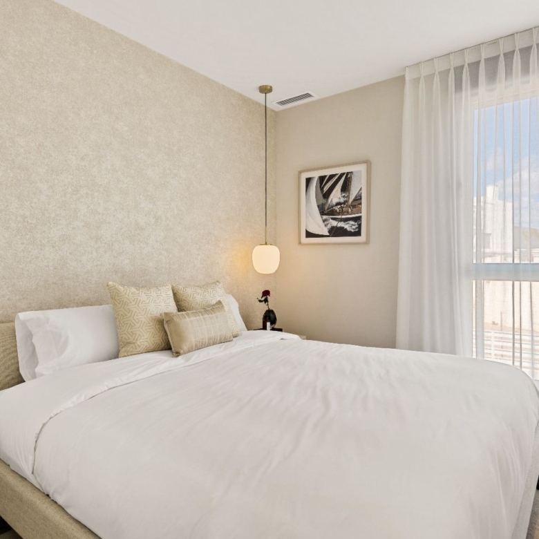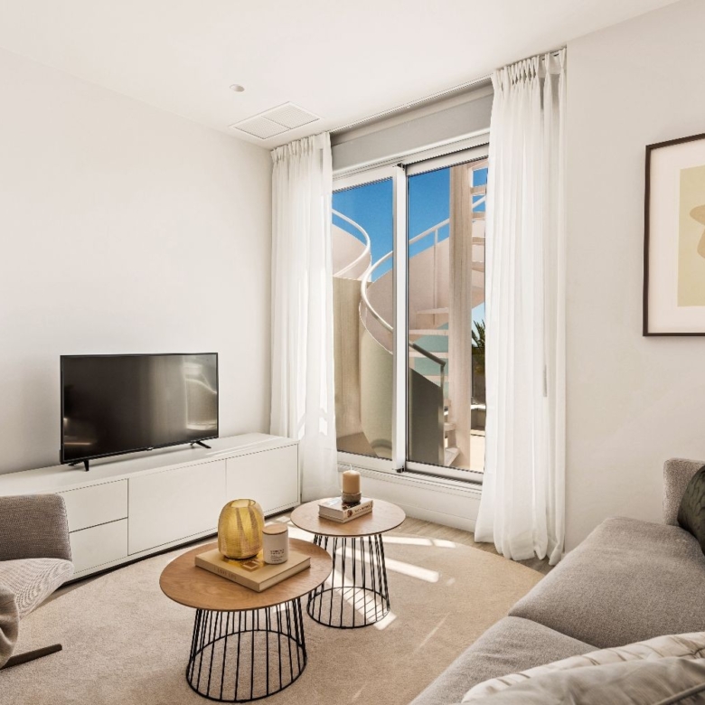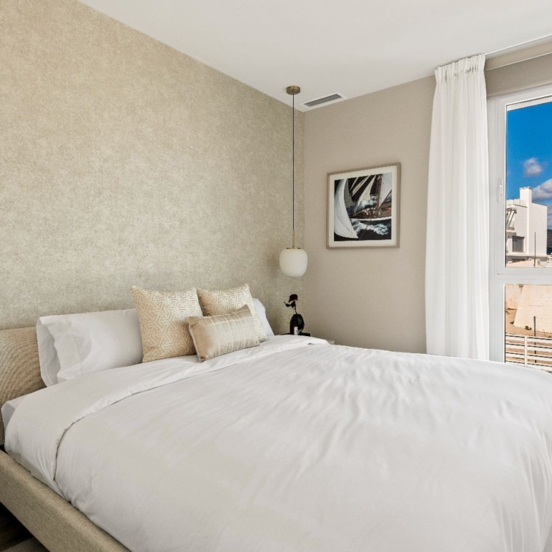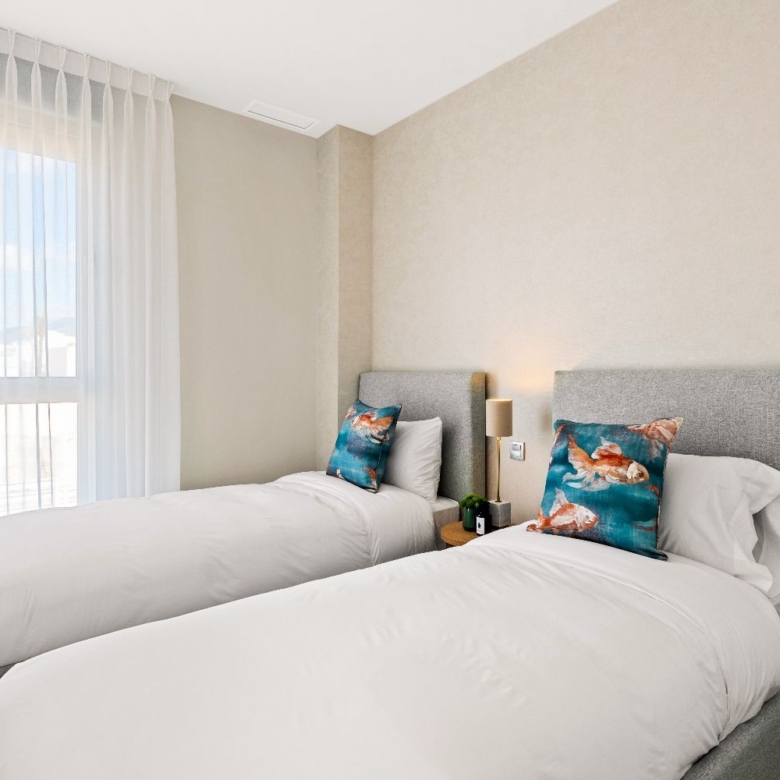 This 2 bedrooms duplex penthouse is located in the new Golden Mile, in Cancelada walking distance to amenities and services and just a few minutes driving from Hotel Anantara Villa Padierna, golf course los Flamingos, Saladillo Beach and Villacana. Contemporary design, comfort and quality combine all this with plenty of light and a unique living. Ground floor level have direct access to living area with open plan kitchen fully fitted and direct access to the terrace , two bedrooms with two bathrooms on suite, one of them with bath and the other one with walking shower, on the top floor there is a generous solarium with open views over the Mediterranean Sea. Porcelanic tiles, fitted kitchen with appliances, video porter, fitted wardrobes , double glazzing, shutters in windows, parking space and storage. This exclusive penthouse offer stunning views to the Mediterranean Sea and is surrounded by beautiful gardens and a beautiful pool. Residents gain access to the St. Vista Clubhouse and benefit from numerous leisure facilities and other amenities in the area.