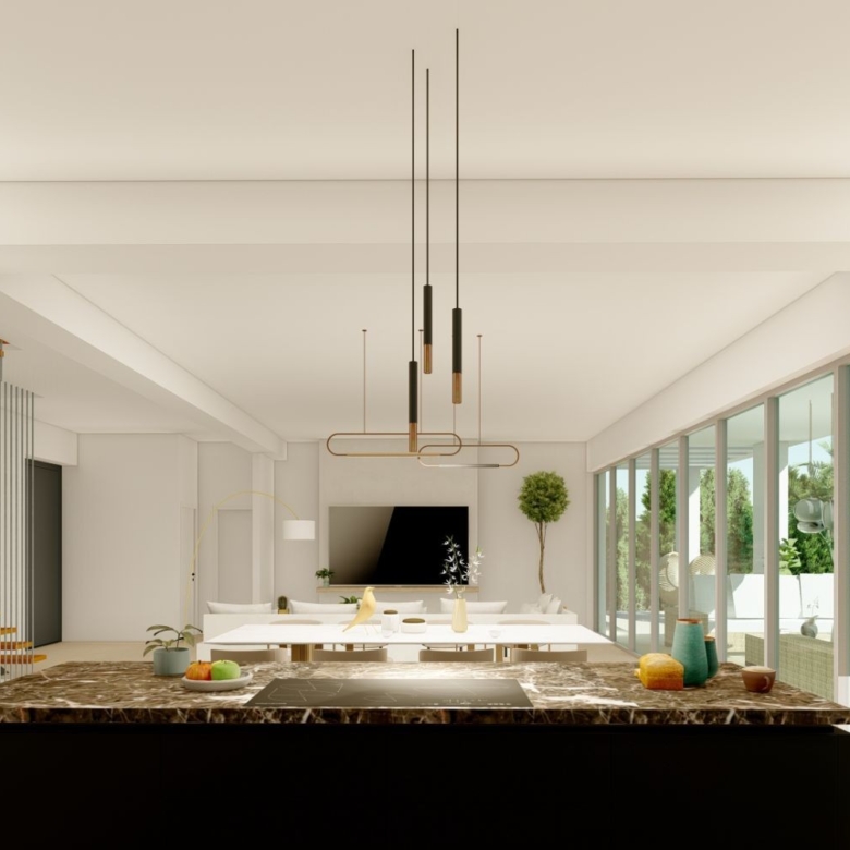 Newly built quality villa on the beach side of San Pedro de Alcántara. Build to the highest German qualities and walking distance to the beach and the paseo of San Pedro. The layout includes main floor: entrance, living and dining area with an fully open plan kitchen with Bosch appliances, guest toilet, one guest bedroom en suite. Access from all areas to the covered and open terraces and the private pool. First floor: master bedroom en suite with dressing area and one guest bedroom en suite. Private terraces and Roof terrace. Lower floor: a separate apartments with another fully fitted kitchen, one guest bedroom en suite and an entertainment area or gym. Inside parking for two cars.
