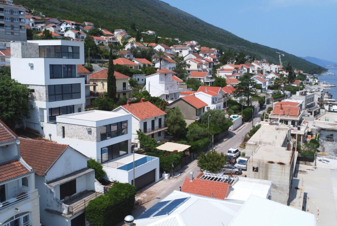 This elegant newly built villa is located in Krašići, a peaceful and picturesque village on the Luštica Peninsula, known for its relaxed atmosphere, crystal-clear waters, and stunning Adriatic views. Just 10 meters from the sea, the villa offers panoramic views of the Bay of Kotor and surrounding mountains from every room, creating a truly immersive coastal experience.Property Highlights:Spacious layout of 200 m² on two levels;Two en-suite bedrooms with sea views and private bathrooms;Open-plan ground floor with a living room, designer kitchen with dining area, guest toilet, and a large sea-view terrace;Private swimming pool with direct access from the terrace;Garage for two cars and secure entrance;High-quality finishes, including Hansgrohe and Villeroy & Boch fixtures, Italian ceramic tiles of the highest quality, underfloor heating and fireplace for year-round comfort, built-in climate and ventilation systems, Schuco-insulated windows for energy efficiency, video surveillance, and high-speed cable internet.The villa’s interior features an original design, including layered lighting scenarios that elevate both style and ambiance. Warm, natural materials combined with cutting-edge technology create a comfortable and luxurious environment. Large windows and glass doors seamlessly connect indoor and outdoor spaces, enhancing the spectacular views.This property is ideal for both year-round living and seasonal escapes, offering a unique combination of privacy and proximity to Montenegro’s top coastal attractions:Just across the street from the beach and promenade15 km to Porto Montenegro – the country’s most prestigious yacht marina and lifestyle village20 minutes to Tivat International Airport10-minute boat ride to Porto Montenegro and PortonoviWhether you’re seeking a serene coastal retreat or a wise investment, this charming seafront villa in Krašići delivers modern luxury, breathtaking views, and direct access to the Adriatic coast.Contact us today to learn more or to schedule your private viewing. Your dream villa by the sea is waiting!