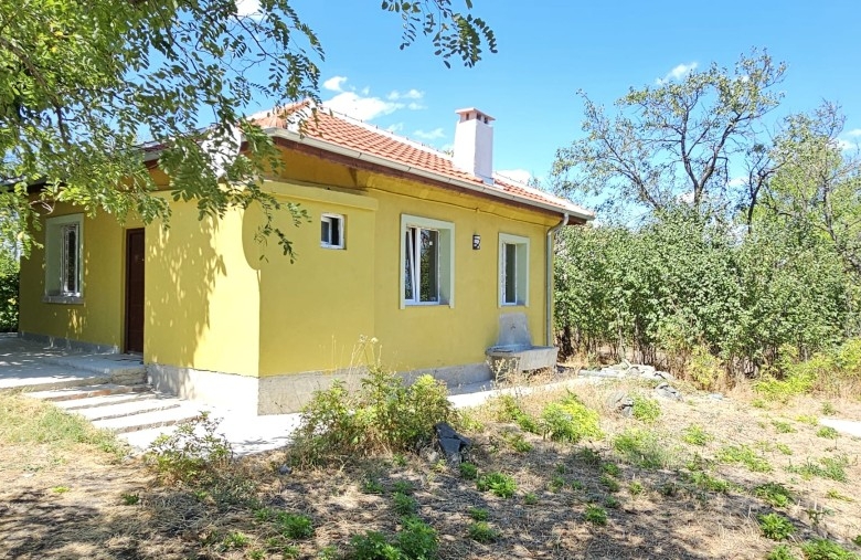 Newly renovated house, with big plot of land – 912 sq.m., in Dyulevo, 25 km from Burgas and the sea A cozy one-story house is for sale in the village of Dyulevo, Burgas Region, Bulgaria. The village is located near the Strandzha Mountains, close to the freshwater lake Mandra Nature Reserve, in the municipality of Sredets. Burgas is just 25 km away via a smooth, paved road. A new road has been built from Dyulevo to Sredets, providing all the necessary infrastructure. The village itself offers two shops, a cafe-restaurant, a library, a park with a playground, a church, and bus service. The one-story house, measuring 56 m2, is located on a level plot of 522 m2. It features an entrance hall, a bright kitchen-dining room, three rooms, and a bathroom with a shower. A concrete area for a gazebo has been created in front of the house. A major renovation was recently completed, including brand new electrical wiring and plumbing, new PVC windows, ceramic roof tiles, a rainwater drainage system, and exterior lighting. The price includes an additional plot of 390 m2.