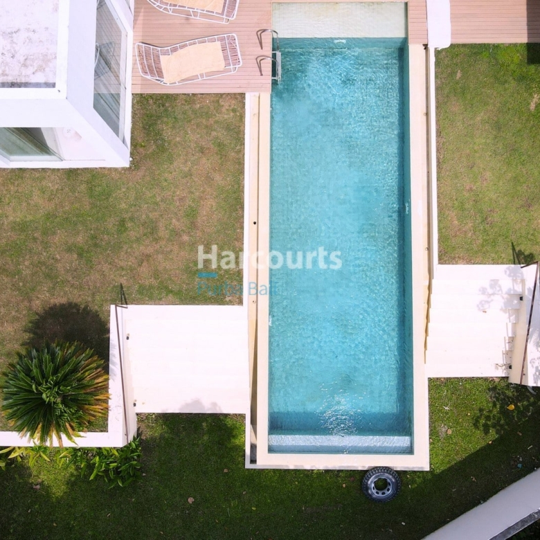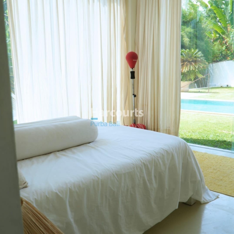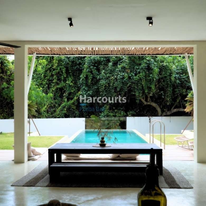 Nestled in a quiet cul-de-sac in Pererenan, this stunning freehold villa offers the perfect blend of privacy, space, and contemporary comfort. Recently renovated, the home sits on 803 sqm of land, with 447 sqm of well-designed living space spread across two levels. The villa’s prime riverfront position provides serene views of lush greenery, creating a peaceful retreat just moments from Canggu’s vibrant lifestyle.inside, the villa features four spacious bedrooms and three beautifully appointed bathrooms, complete with double sinks, rain showers, and a bathtub. The fully equipped kitchen and enclosed dining area offer an elegant setting for meals, while the enclosed living room ensures year-round comfort. Outside, a private 7m x 3.5m swimming pool is surrounded by a landscaped garden, offering a relaxing escape.Located in one of Pererenan’s most desirable residential pockets, this villa enjoys the best of both worlds—peaceful surroundings with no passing traffic, yet just minutes from top dining spots like Baked, Brunch Club, and Woods Pererenan. Fitness and leisure options, including Jungle Padel and Wrong Gym, are within easy reach, while Pererenan Beach and La Brisa are just a short drive away.With ample parking for two cars and the potential to expand with additional rooms, this villa presents an exceptional opportunity for both private living and investment. Priced at iDR 20,000,000,000 with a FREEHOLD ownership title, it offers a rare chance to own a prime riverfront property in Pererenan’s most sought-after area.Nearby: Woods Pererenan 300 m, Brunch Club Pererenan 500 m, Baked Pererenan 700 m, Wrong Gym 1 km, Pererenan Beach 1.2 km, La Brisa 1.5 km, Lyma Beach 1.5 km, Jungle Padel 2 km, Montessori School 3 km