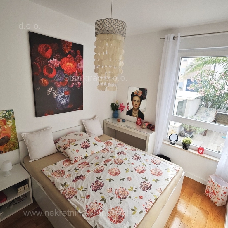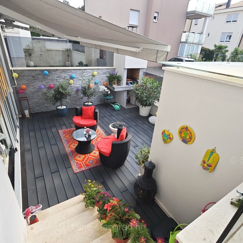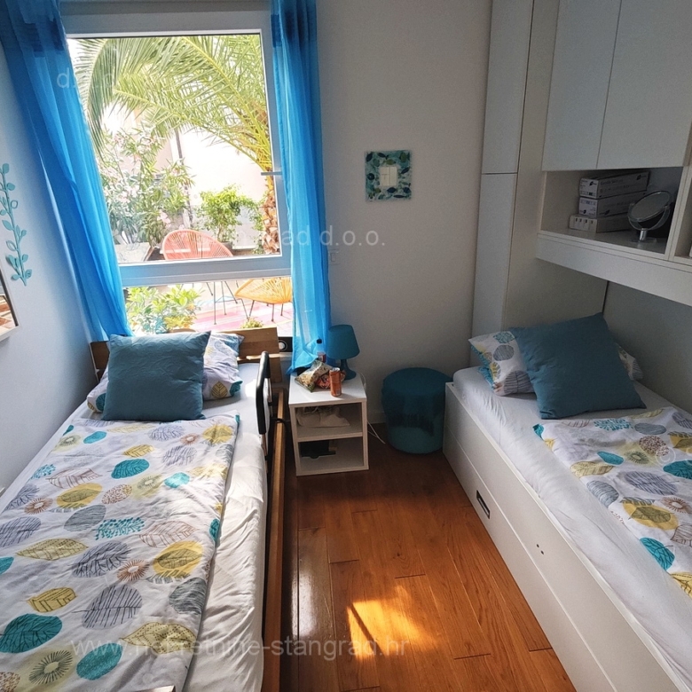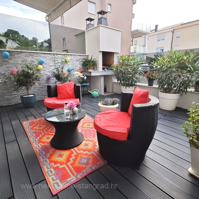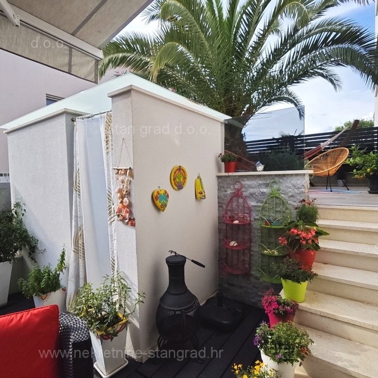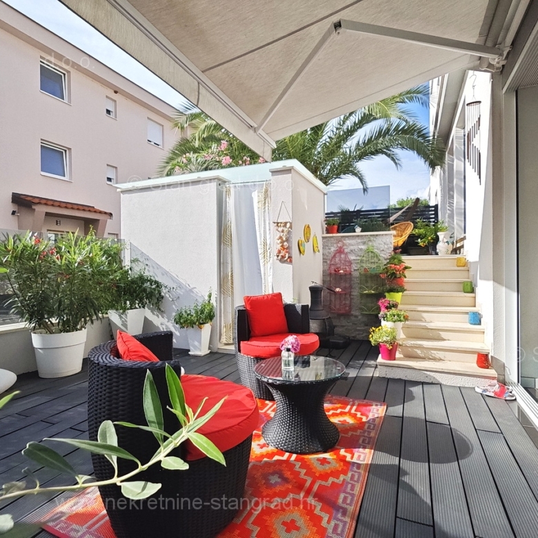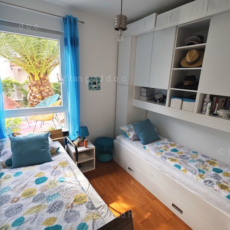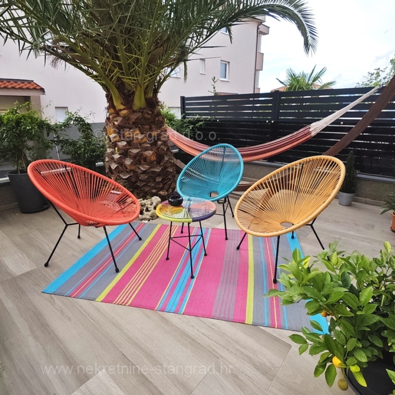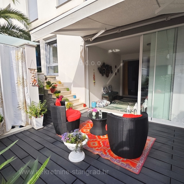 From the excellent offer of real estate in the agency Stan Grad Immobilien, a very nice apartment in the high-quality and desirable coastal Adriatic destination of the island of Krk stands out. This property is located in a prime location, integrated into the area of the center of the town of Njivice and in the immediate vicinity of the sea, the beach and other tourist facilities. This is a very comfortable, medium-sized one-story apartment with a very good layout. In a very good and quality building, the apartment is located on the ground floor. The apartment has a total area of approximately 66 m2. This area includes a living room and kitchen, 2 bedrooms, a storage room, a bathroom and a closed loggia. The interior of the property is very well maintained and fully equipped with all the necessary technical devices and quality furniture. It is certainly worth noting that the ownership of the described apartment includes a well-organized garden of 47 m2 with an equipped grill area and an outdoor shower. The owner of the apartment will have one parking space at his disposal. In addition to the above, it can also be noted that the apartment is oriented in such a way that it offers a nice view of the lovely coastal landscape and the immediate surroundings of the settlement. This apartment is owned by a natural person and in the name of its transfer, the buyer is obliged to pay real estate sales tax in the amount of 3%. The seller of the apartment guarantees complete and orderly documentation and a simple transfer of the property to the buyer. We cordially await you at the address of the office on the island of Krk. If you decide to buy real estate from us, the professional and friendly team of our agency will be at your disposal for all administrative actions related to the transfer of ownership of the real estate and related accounts to your name.