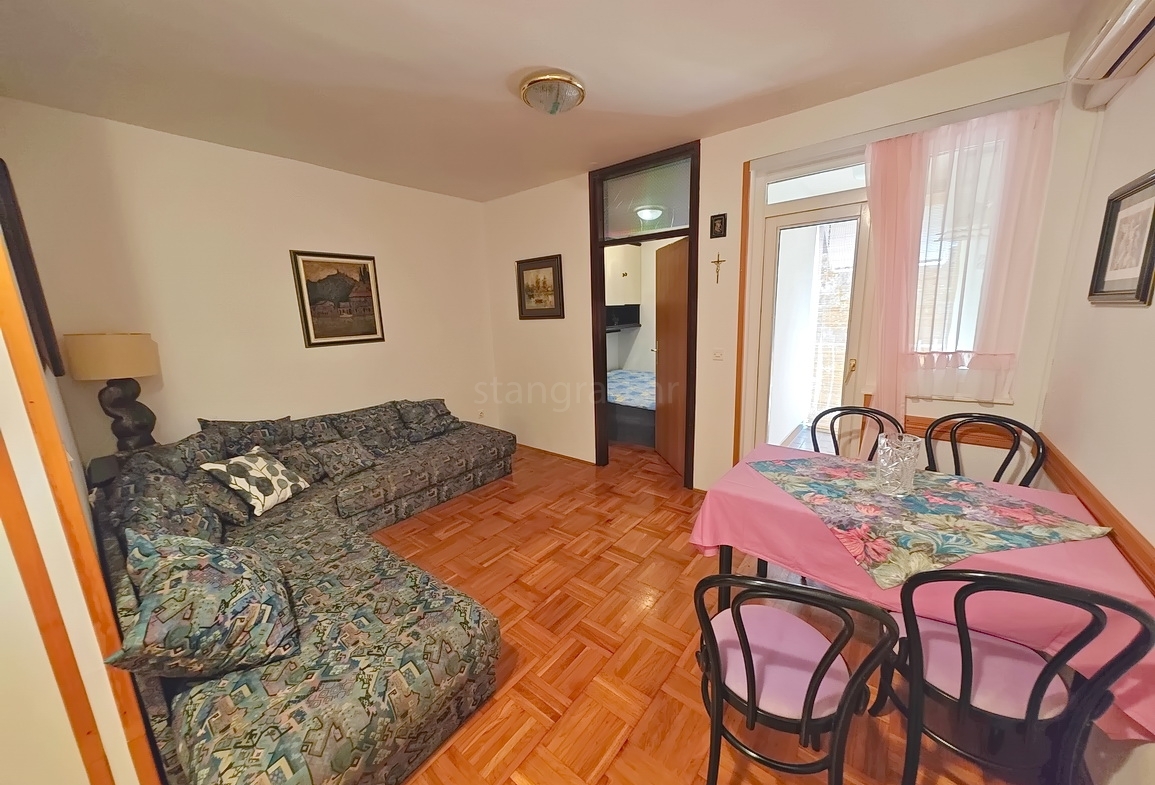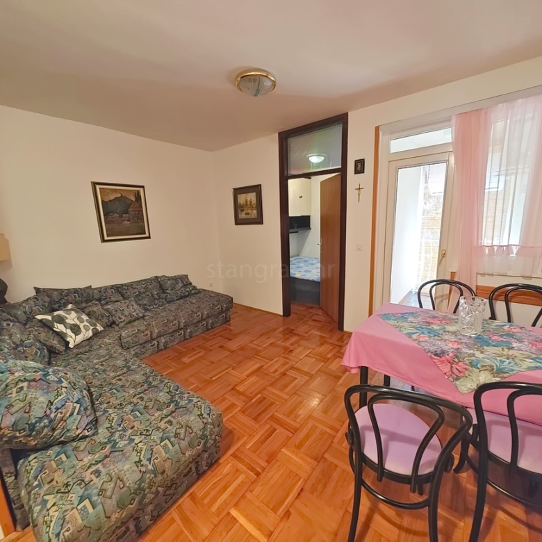 The total surface area of the apartment is 33 m², and it consists of a living room with a kitchen and dining area, one bedroom, a bathroom, and a covered balcony. The apartment is equipped with functional furniture and all the necessary technical amenities for everyday living. In addition to the interior space, the owner also has the right to use the shared part of the building’s yard.