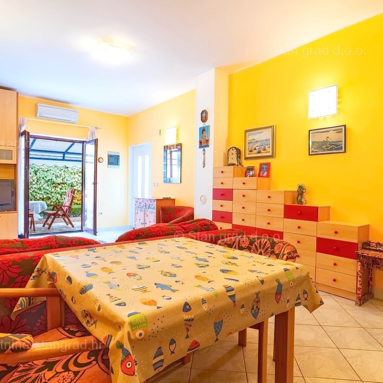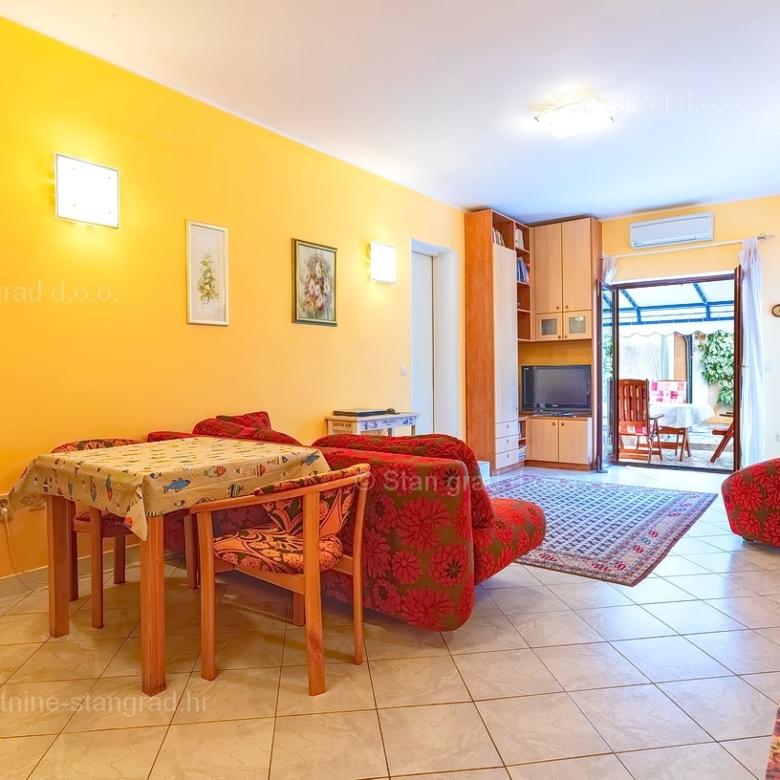 From the excellent offer of real estate in the agency Stan Grad Immobilien, a very nice apartment in the high-quality and desirable coastal Adriatic destination, the island of Krk, stands out. The apartment in question is harmoniously integrated into the characteristic coastal environment and offers a comfortable walking distance to the beach and access to all amenities in the center of Njivice. Looking at the property type, this is a rarely available, smaller, one-story apartment with an excellent layout. Within a very beautiful building, the apartment is located on the ground floor. The total area of this apartment is 40 m2. This area is occupied by a living room and a kitchen with a dining room, a bedroom, a bathroom and a large terrace. The interior of the property is particularly well maintained and fully equipped with the necessary technical devices and high-quality furniture. It is necessary to say that as part of the ownership of this apartment comes a carefully arranged and maintained yard of approx. 100 m2 with a garage. The owner of the apartment will have one parking space at his disposal. In addition to the previous features, the building is perfectly oriented, so that the apartment offers a wonderful view of the sea and the coast. This apartment is the property of a natural person, so the buyer is obliged to pay sales tax in the amount of 3% when transferring its ownership to his name. The real estate seller guarantees a quick transfer of ownership rights and proper ownership and technical documentation. We are waiting for you in Kvarner, at the address of the office on the island of Krk. If you trust us, Stan Grad Immobilien will be happy to assist you in the legal procedures of transferring the ownership of the property and the utility bill to your name.