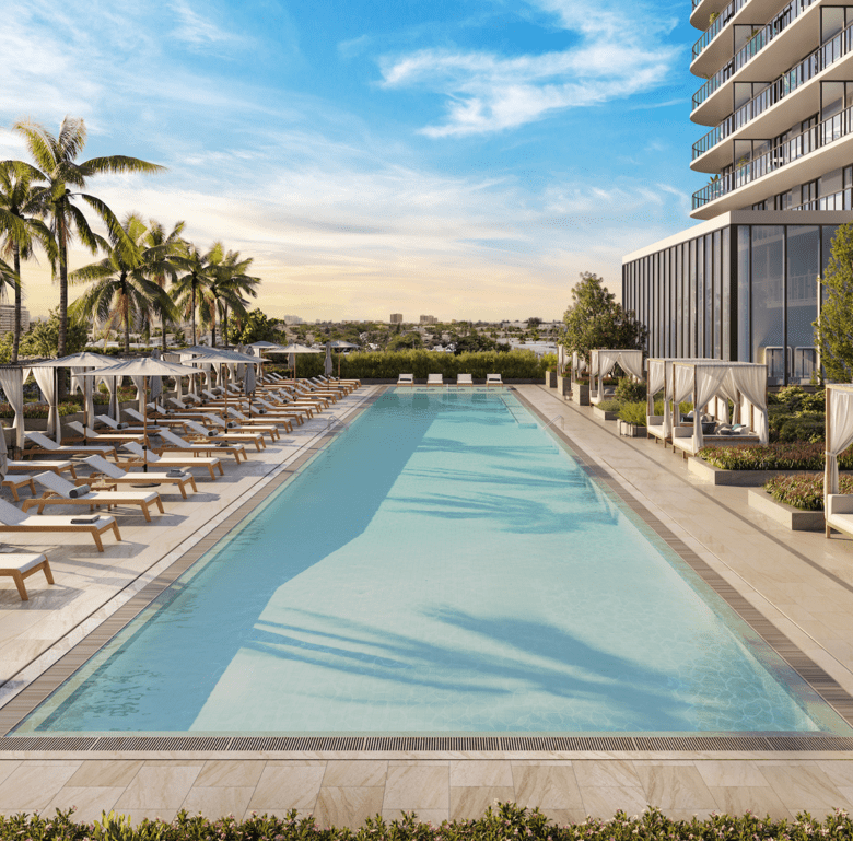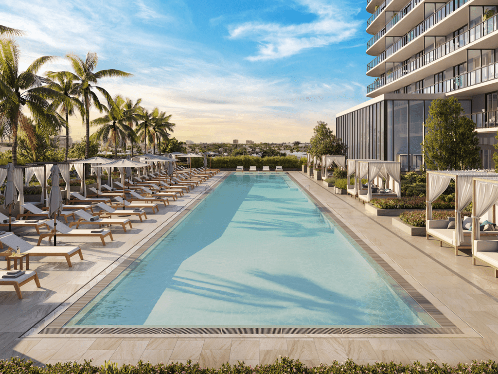* 64,000 sqft of amenities, including a resort-style pool stretching over 150 feet, pool-side cabanas, an open-air bar, lush landscaping