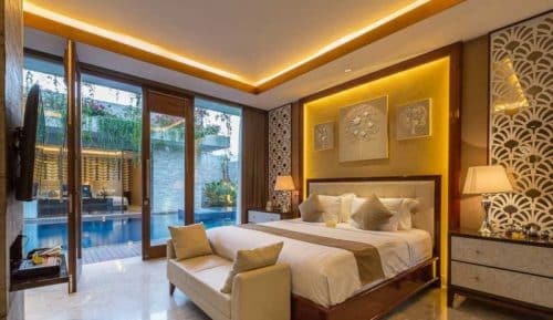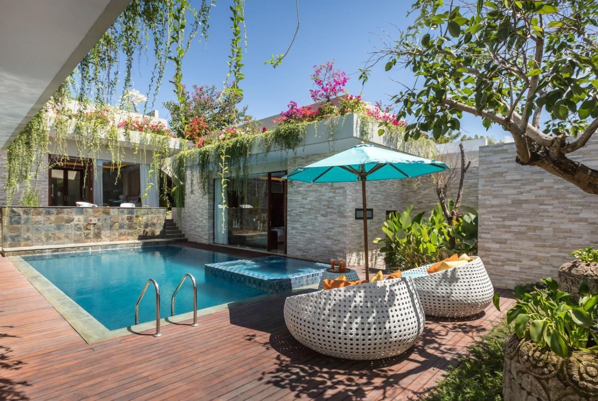 This FREEHOLD, 3 bedroom villa sits on high ground and is located in a secure, gated estate in a lovely neighbourhood in Nusa Dua, a short drive to golden sand beaches and a mere 10 minute drive to the airport using the Bali Mandara toll road.Resting on 632 sqm of land with a building size of 400 sqm, the well-maintained property built in 2012, boasts a lovely garden setting surrounding a private 8.6m x 4.6m pool and sundeck. The villa is impeccably furnished throughout providing an optimal level of comfort.The villa features an open-plan, enclosed living and dining areas with a fully equipped kitchen. All 3 bedrooms are decorated luxuriously with attached marble bathrooms. The rooftop terrace is a great spot to enjoy ocean views or admire a beautiful sunset. The property has 2 additional guest bathrooms and parking for a car. Access to the villa is via a 6-metre asphalt road.The property is also available for Yearly Rental.Nearby: Nusa Dua Beach 2.2 km, Conrad Hotel and Resort 2.2 km, Mulia Resort 2.5 km, Udayana Hospital 4 km, Sidewalk Shopping Center 5.7 km, Jimbaran Beach 5.7 km, Airport 7.5 km.