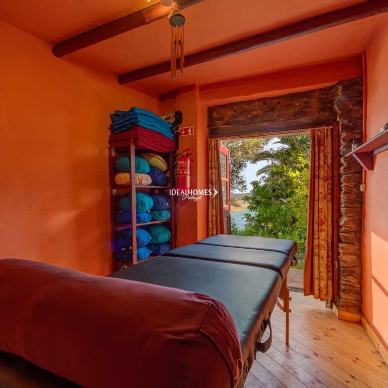 This fully furnished commercial property is for sale located in Santa Clara-a-Velha, Odemira. The property has been built to a high standard and is set on 60000m2. It is currently being used as a bed and breakfast awarded a certificate of excellence 10 years running by travellers choice award. This hidden oasis is set in a picturesque lakeside location surrounded by a variety of wildlife and birds. Comprising a fully equipped professional kitchen, bar, laundry, two drawing rooms, office and 16 bedrooms with en-suites. Outside there is a garden with terraces and seating areas, a pizza oven and bbq, garage/workshop, massage room and wood-fire sauna. The grounds offer a secluded setting and boast an array of tropical plants, flowers and vegetable gardens. There is also a shaded yoga shala the perfect space for peace and relaxation looking out across the lake. The land is also complete with its own helipad. The property is 90% solar run and the electricity is powered by photovoltaic arrays. This is a great investment opportunity should you be looking to run your own business as there is a transferable AL (Alojamento Local) licence, perfect if you are looking to generate income. Located close by to Beja the capital city of the lower region of Alentejo. Its scenic city offers rich history including Beja Castle. There is a wide range of local restaurants and cafes offering local traditional produce from Alentejo. The property is also situated an hour from the south coast. Property ID: IDH32856 Price: €3,250,000 Property Size: 441.95 m2 Land Area: 60000.00 m2 Bedrooms: 11 Bathrooms: 15 Property Type: Commercial property Property Status: For Sale