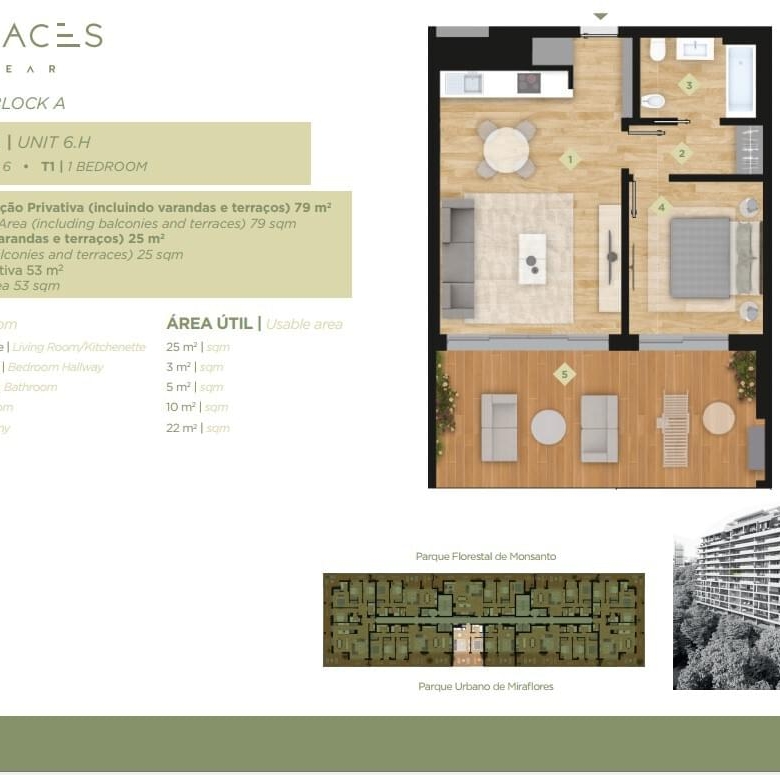 1-bedroom apartment facing Miraflores Urban Park, on the 6th floor, west-facing. Welcome to TERRACES MIREAR, where balance reaches a higher level. A unique space, in perfect harmony between the green of Monsanto and the blue of the Tagus, between the quality of the exterior architecture and the sophisticated interior design, between accessibility and sustainability. Apartments with large areas and generous balconies, excellent finishes, parking for cars and bicycles, pre-installation for electric vehicles, with a focus on sustainability and high energy efficiency, duly certified. The project comprises five residential buildings that offer 426 apartments, designed by the hands of architects Cristina Rocheta and Paulo da Gama. Living at MIREAR is being able to enjoy the distinctive features that include gyms, swimming pools, SPA, multipurpose rooms, and large green areas in the surroundings for outdoor activities, promoting a healthier and more balanced life. A new way of living, in a perfect balance. Miraflores allows you to easily reach the heart of Lisbon, Cascais and any other part of the country, through excellent access (A5, CRIL and CREL), also with a public transport network. Property ID: PDF-PF33180 Price: €450,000 Property Size: 79.0 m2 Bedroom: 1 Bathroom: 1 Property Type: Apartment Property Status: For Sale