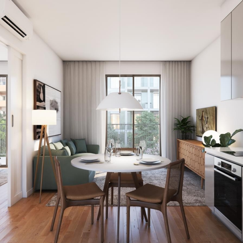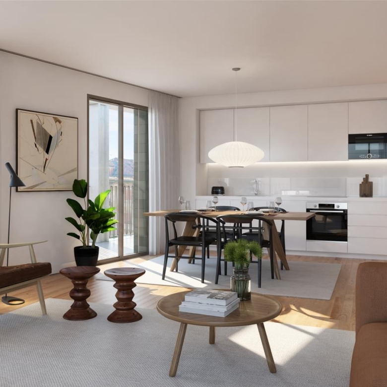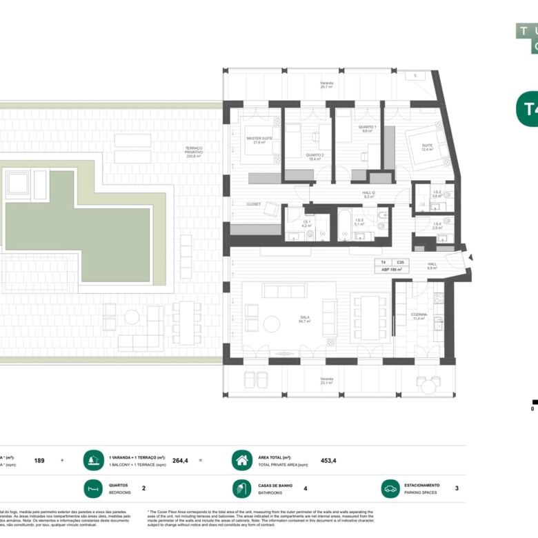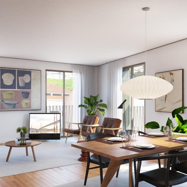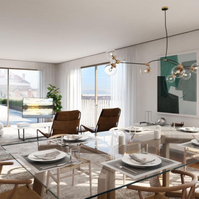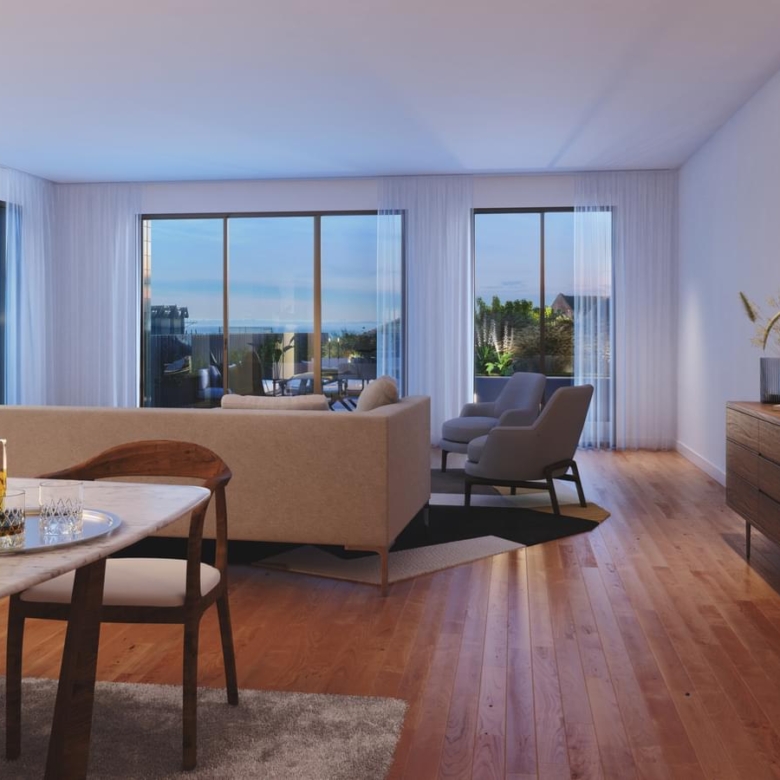 4 bedroom apartment, with a 189 sqm interior area and a 220 sqm terrace facing south with a private swimming pool. This apartment is placed in the 3rd floor of the Turquesa condominium, in Oeiras, Dafundo. The distribution of the rooms in this apartment is as follows: - Entry hall (6,6 sqm); - living room and dining room (54,7 sqm); - Kitchen (11,4 sqm), with access to the living room through a sliding door; - Social bathroom (2,9 sqm) - Hall that distributes the bedrooms (9,3 sqm) - Full Private Bathroom (5,1 sqm), to support two of the bedrooms - 2 bedrooms (10,4 sqm + 9,6 sqm respectively), with embedded wardrobes; - Suite (12,4 sqm) with an embedded wardrobe and a full private bathroom (3,4 sqm); - Master Suite (21,6 sqm) with embedded wardrobes, a closet area and a full private bathroom (4,2 sqm); The living room and the master suite have direct access to a terrace facing south. This apartment also includes 3 parking spaces and a 9 sqm storage area. The completion of the work is predicted for the summer of 2024. This business is a resale, being made the transfer of the contractual position. Turquesa allows a life in harmony with the blue of the sky and the sea. This is a unique residential condominium where the colours of nature reign, with the apartments framed around a green central square. The 61 apartments distributed among four buildings, with 2, 3 4 and 6 floors, have different access cores, ensuring the residents the possibility of enjoying the communal spaces in a more calm, harmonious and guarded way. From the studio to the 4+1 bedroom apartments, with areas of 43 to 213 sqm, most apartments have generous balconies, terraces or gardens – on the ground floors – ensuring each house an outdoor area so that its residents can enjoy exterior areas, the sun exposure and proximity to the Tagus River, through an experience that combines the best of an urban area with calm and modesty that you can enjoy as a family. All fractions have private parking spaces and storage areas in the basement. With the river right next door, the higher floors provide its residents with an impressive view. Turquesa is located in Dafundo, in Oeiras, in a neighbourhood with a familiar atmosphere, being only a 10 minutes’ drive from the centre of Lisbon. Here you can find schools, supermarkets, pharmacies and spaces for sports activities, being also a step away from the seafront promenade of Alges, the park and the National Stadium of Jamor. Characterised by its mild climate, Oeiras is one of the most developed municipalities in the country, being in a privileged location just a few minutes from Lisbon and Cascais and with superb views over the river and sea. The restored buildings full of charm cohabit in perfect balance with the new constructions. The seafront promenade accesses the fantastic beaches along the line. Porta da Frente Christie’s is a real estate agency that has been operating in the market for more than two decades. Its focus lays on the highest quality houses and developments, not only in the selling market, but also in the renting market. The company was elected by the prestigious brand Christie’s International Real Estate to represent Portugal, in the areas of Lisbon, Cascais, Oeiras, Sintra and Alentejo. The main purpose of Porta da Frente Christie’s is to offer a top-notch service to our customers. Property ID: PDF-PF32463 Price: €1,960,000 Property Size: 189.0 m2 Bedrooms: 4 Bathrooms: 4 Year Built: 2024 Property Type: Apartment Property Status: For Sale