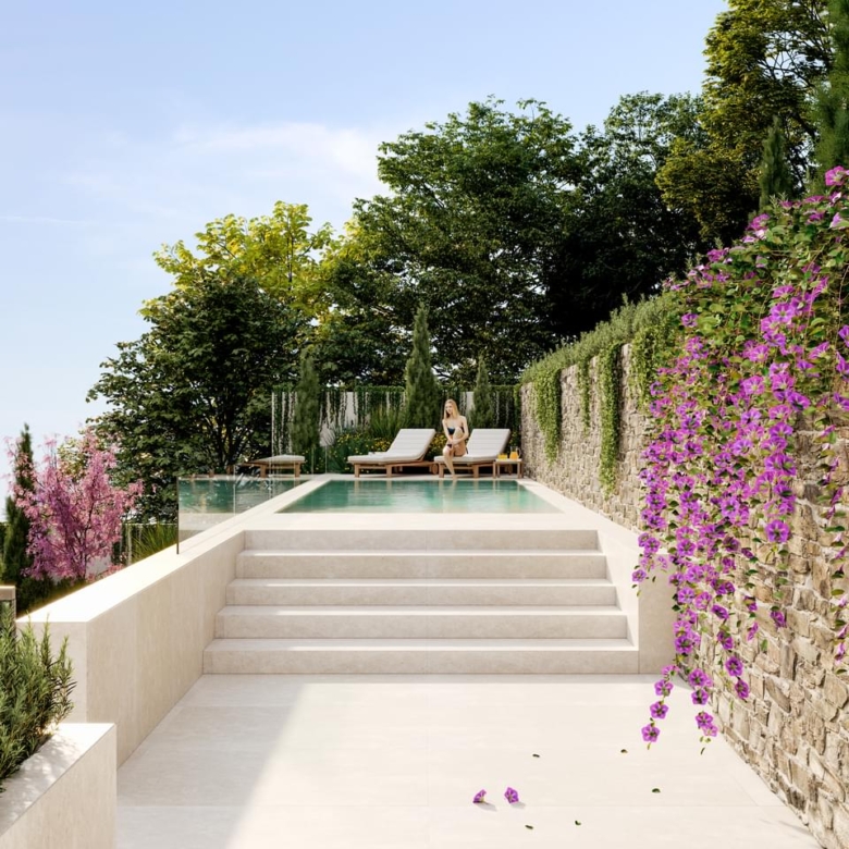 The Riverine is an exclusive condominium composed only by three villas, the result of a modern rehabilitation in a building full of history, with a stunning view of the Tagus and the Atlantic. These are villas composed by three floors, with private garage and a garden area. In the common area of the condominium there is a swimming pool and gardens with panoramic views of Lisbon and the sea. With a project designed by a renowned Portuguese architecture firm, Riverine was thought to detail, privileging the experience of being in contact with nature. Located in Marginal, in the historical centre of the charming village of Paco de Arcos, the Riverine condominium is between Lisbon and Cascais, being only a short walking distance from all sorts of services, local business, transportation and restaurants. The villa is distributed as follows: Ground Floor: Entry Hall – 7,56 sqm Laundry area – 3,64 sqm First Floor: Living Room – 36,38 sqm Social bathroom – 2,23 sqm Kitchen – 24,43 sqm Outdoor space – 23,58 sqm Second Floor: Corridor – 6,79 sqm Bedroom 1 – 13,45 sqm Bedroom 2 – 13,66 sqm Private bathroom – 2,09 sqm Suite – 14,21 sqm Bathroom of the suite – 6,47 sqm Balcony – 0,79 sqm Balcony – 0,79 sqm Balcony – 0,79 sqm A unique villa for those who intend to live with exclusivity, combining sea view, outdoor areas, leisure with swimming pool and also centrality. ’ Property ID: PDF-PF30427 Price: €1,470,000 Property Size: 172.0 m2 Bedrooms: 3 Bathrooms: 3 Property Type: House Property Status: For Sale
