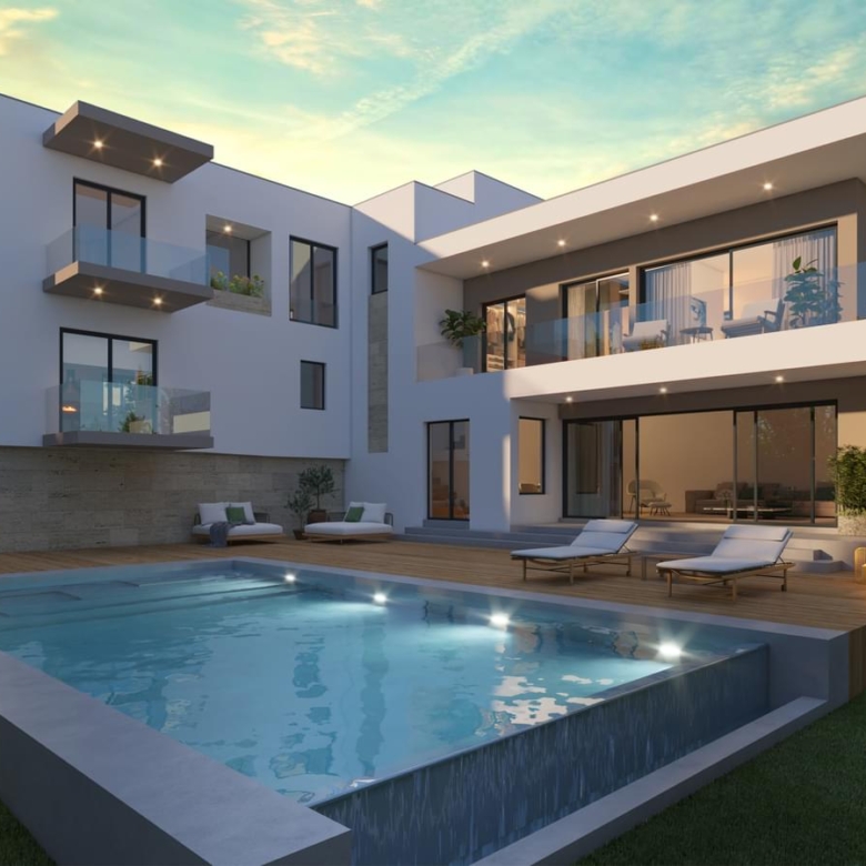 4 bedroom villa, under construction, of contemporary architecture, located in Quinta da Moura, in Oeiras, a few minutes away from the centre of Paco de Arcos and Oeiras. By acquiring this property you have direct access to the infrastructures of the Sports Complex with Tennis Courts, Paddle, Swimming Pools and Riding Club, among others. The villa has a 440 sqm gross construction area, it is inserted in a 793 sqm plot of land and it is distributed by 2 floors and a basement. This villa is designed so that its experience and functionality are perfectly oriented to East and South, taking full advantage of the sun exposure, blending the interior with the swimming pool and exterior area. At this stage of the work it is still possible to choose finishes and make some changes to the project in order to personalise your home 100%. The villa is composed by two floors and it is distributed as follows: Ground floor - Large entry hall with a double high ceiling allowing ample light to enter; - Living and dining room (53 sqm) with access to a covered terrace area and subsequently to the outdoor deck that surrounds the swimming pool; - Fully equipped kitchen in island and dining area (27 sqm) and access to a balcony; - Bedroom (12,75 sqm) that can work as an office; - full private bathroom to support the bedroom and social area; Upper floor - Master suite (47 sqm in total) with two fronts, East and South, full private bathroom (7 sqm) and a closet area (10 sqm) with a window that provides natural light. The suite comprises a large dimensioned balcony that also runs along both fronts; - Two suites ( 15 sqm + 18 sqm) both with embedded wardrobes and with access to a balcony; - full private bathroom (6 sqm) to support both bedrooms; - laundry area (4,2 sqm); Outside there will be a shed for 2 cars and the ramp provides room for more cars. 5 minutes away from the access to the A5 motorway, being 15 minutes away from Lisbon and 20 minutes away from Cascais. Distances from some locations of interest: 19 Km away from the airport 10 Km away from the best beaches of the line 9 Km away from Park International School 8 Km away from the Spanish Institute ‘Giner de los Rios’ 2 Km away from Oeiras International School 12 Km away from the French Lycee Charles Lepierre 9 Km away from Saint Julian’s School Shopping centre with several shops including cinemas, banks, pharmacy, hypermarket and restaurants. 4 Km away from Private Clinic 6 Km away from Oeiras Golf Characterised by its mild climate, Oeiras is one of the most developed municipalities in the country, being in a privileged location just a few minutes from Lisbon and Cascais and with superb views over the river and sea. The restored buildings full of charm cohabit in perfect balance with the new constructions. The seafront promenade accesses the fantastic beaches along the line. Porta da Frente Christie’s is a real estate agency that has been operating in the market for more than two decades. Its focus lays on the highest quality houses and developments, not only in the selling market, but also in the renting market. The company was elected by the prestigious brand Christie’s International Real Estate to represent Portugal in the areas of Lisbon, Cascais, Oeiras and Alentejo. The main purpose of Porta da Frente Christie’s is to offer a top-notch service to our customers. Property ID: PDF-PF29301 Price: €1,400,000 Property Size: 317.0 m2 Land Area: 793.0 m2 Bedrooms: 4 Bathrooms: 3 Year Built: 2025
