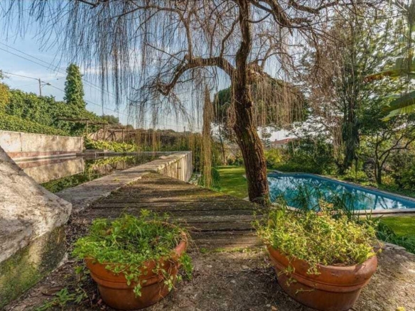 Farm with 11,000 sqm of land that offers a unique opportunity to enjoy a quiet and relaxing lifestyle, surrounded by nature and history. With ample spaces and an imposing interior architecture, this property keeps in excellent condition all the charm of the past. The exterior spaces are truly impressive, with a vast terrain full of fruit trees (vines, fig trees, arbutus trees, quince trees, mandarin trees) and lush vegetation. The swimming pool and the tank are the perfect setting for moments of leisure and fun, while the changing rooms provide all the necessary comfort. The two 1 bedroom apartment annexes with 208 sqm offer additional space for visits or for guest accommodation, while the living room with fireplace between the two annexes is the ideal place for conviviality and relaxation. With a privileged location and a magical atmosphere, this farm is the perfect place to create new memories, celebrate special moments and enjoy life in full. A true gem in the heart of nature, waiting to be discovered. Three water mines and well. Patio to put a tent for events. The main house, with 450 sqm, consists of two floors and it is distributed as follows: First Floor 2 living rooms, one with fireplace, kitchen with wine cellar, 1 bedroom and bathroom. Second Floor 5 bedrooms, 4 of them with bathroom and a living room. Farm with plenty of privacy, great accesses, only 2 kms away from the accesses to the motorway, 6 kms away from the beaches of Oeiras and 17 kms away from the international airport of Lisbon. Excellent business opportunity or to live in a farm just a few minutes from the centre of Oeiras, Cascais and Lisbon. The place has a great potential for various activities, such as rural tourism, holding events, setting up a school or even as a family residence. With a quiet and rural environment, it is possible to offer unique experiences to visitors interested in knowing the country life, promote outdoor educational activities, hold weddings, parties and other celebrations, or simply enjoy a large dimensioned and cosy space to live in contact with nature. With proper infrastructure and planning, it is possible to fully exploit the potential of this site for different purposes. Porta da Frente Christie’s is a real estate agency that has been operating in the market for more than two decades. Its focus lays on the highest quality houses and developments, not only in the selling market, but also in the renting market. The company was elected by the prestigious brand Christie’s International Real Estate to represent Portugal in the areas of Lisbon, Cascais, Oeiras and Alentejo. The main purpose of Porta da Frente Christie’s is to offer a top-notch service to our customers. Property ID: PDF-PF33910 Price: €2,600,000 Property Size: 450.0 m2 Land Area: 11000.0 m2 Bedrooms: 5 Bathrooms: 7 Property Type: Mansion Property Status: For Sale