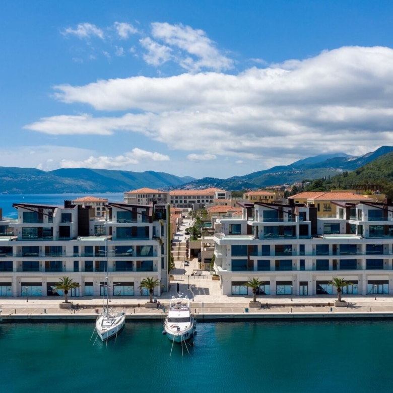 These one-bedroom apartments for sale are located in Kumbor – Herceg Novi, in the modern new development Portonovi. This world-class resort, complete with a state-of-the-art marina serving mega yachts (with fuel taxes rebates up to 40%) and the first European location from global hoteliers “One&Only”, is the Adriatic’s most sophisticated new destination.This is a sophisticated collection of elegant apartments, featuring spacious open-plan design and widescreen views of the bay and mountains. As well as the 238-berth harbor just outside, each of the Marina residences is perfectly positioned to make the most of all that Portonovi has to offer, with bars, restaurants, and cafés all close at hand.Marina life at Portonovi is about the modern, lively and connected atmosphere.On the waterfront, the apartments are elegant and contemporary, with a sophisticated and luxurious feel. Wood and glass combine for a sleek look. The elegant interior spaces are designed to reflect the nautical environment with balconies bringing the outside in. By harmonizing traditional materials applied to modern shapes and forms, the exterior design flows through to the interior space and emphasizes the fluidity of the design.Down some steps from the waterfront and close to Marina Square, a more traditional vernacular connects these residences with the village feel and with the social aspect of marina life. These apartments, all with private balconies and terraces, are located alongside a range of designer boutiques and galleries, while most of the fine dining and entertainment experiences for the development are also at ground level in this area, captivating and exciting from day into evening.The Marina residences are waterfront, with excellent sea view. The apartments consist of a large open-plan living room with a dining area and a kitchen, a bedroom with a bathroom, and a guest toilet. One-bedroom apartments rangefrom 82m² up to 115m²and arepriced from €695,000 to €925,000.A five-star concierge service is available around the clock to take care of your every need, including organizing bespoke itineraries, providing domestic care and maintenance, and arranging a taxi, water taxi, and helicopter services. Experienced and professional, the team speaks more than 15 languages, with the expertise to take care of every guest and homeowner.Portonovi Marina village is located at the entrance of the Boka Bay, only 17km away from the international airport Tivat and 35km from the international airport Dubrovnik, Croatia. From these apartments to the Old Town Kotor which is under UNESCO protection is less than 36km. The capital of Montenegro and airport Podgorica are 140km away.With a bayside location sheltered by the neighboring mountains, these bespoke apartments offer contemporary design and intimate waterfront living, with great rental potential, and are an excellent investment opportunity.If this sounds interesting to you, feel free to contact us for more information about avaliable apartments.