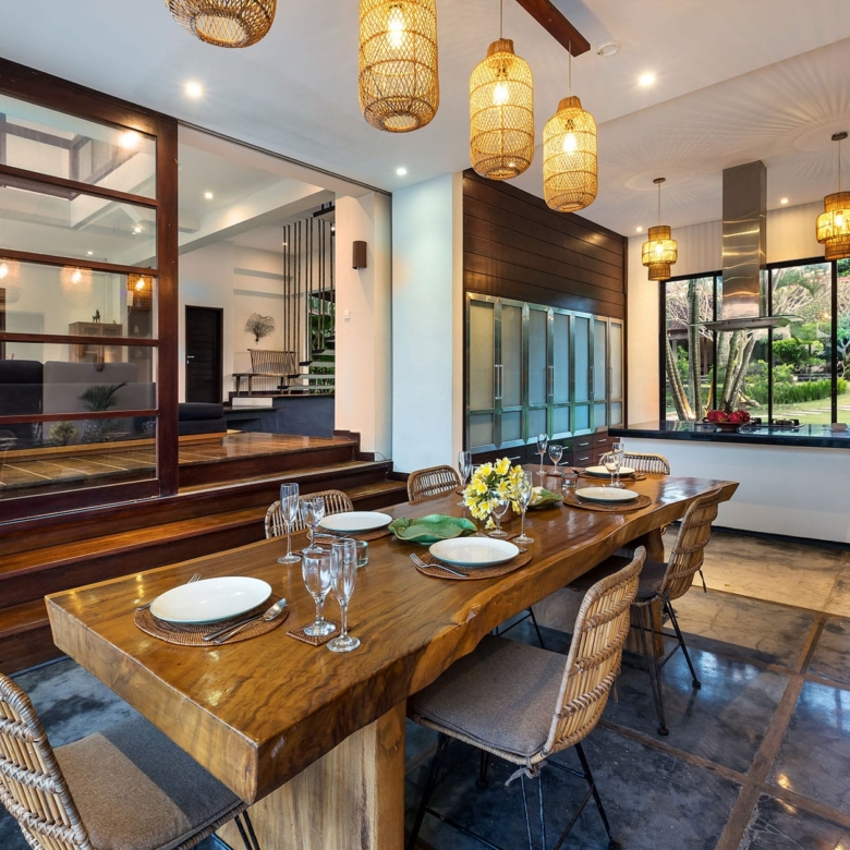 Located in the tranquil village of Seseh, where one can still find the essence of Bali, lies an expansive FREEHOLD 1990 sqm beachfront oasis – a 5-suite luxury estate boasting unobstructed 180-degree views of the indian Ocean and breathtaking sunsets. The property was designed by acclaimed architect V. Martin who used a combination of innovative and sleek designs with traditional methods of construction. As a result, the blending of global chic and tropical feel finds its way in every aspect of the property.The property with a build size of 1000 sqm sits on a large tropical garden and consists of a two-story beachfront villa with 3 stylishly decorated ensuite bedrooms facing the ocean, a living area, dining room, kitchen and media room. Located behind the main house, the L-shaped guest pavilion is a traditional Balinese house, remodelled to modern standards. it houses 2 ensuite bedrooms that open up to the lush tropical garden with a partial view of the ocean.There are 2 swimming pools in this stunning estate. For those who wish to relax and sunbathe by the ocean, there is an infinity-edge 16m x 8m pool with a shallow area for children. There is also a 30 metre lap pool running from the back garden onto the waterfront and is visible through the glass floor of the main beachfront villa.in the main building, floor-to-ceiling glass windows of the living and dining room areas provide a panoramic view of the beach and ocean. The dining room faces seats up to ten people and offers the possibility of dining al fresco or in the comfort of an air-conditioned space with sliding glass panels. A fully equipped modern kitchen is adjacent to the dining and living area. On the second floor is a cosy media room. The staff quarters consist of 2 bedrooms and equipped with a kitchen and bathroom. The property also has parking for 2 cars.This is a golden opportunity to acquire one of the finest beachfront estates on the island. The property already has the sought-after Pondok Wisata (rental license), convenient for those investors who seek good returns from the luxury rental market.