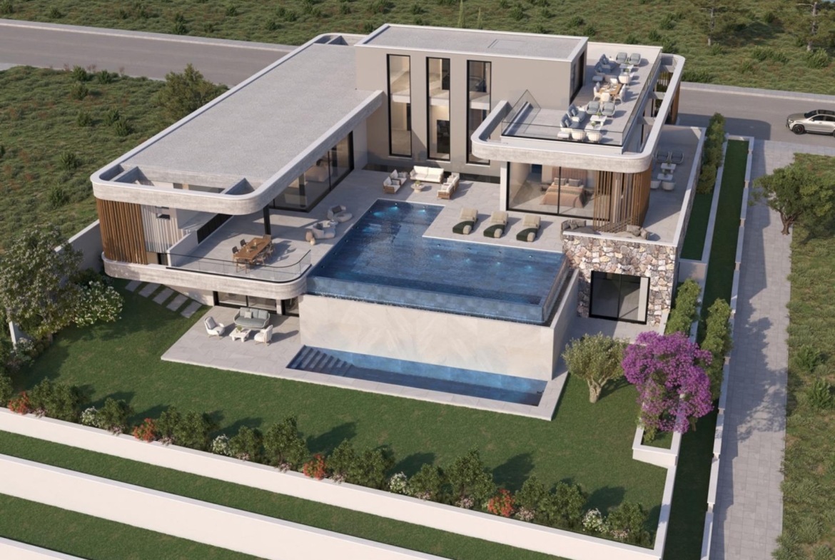 This magnificent 4 bedroom villa is nestled on a sprawling 1,622 sq. m. plot, offering captivating mountain views. Located in the prestigious Opalia Hills suburb of Limassol, the villa resides in a serene neighborhood of modern luxury homes and natural beauty, just 10 minutes from the city and 15 minutes from pristine beaches. The villa features two floors connected by an elegant staircase and lift. The open-plan ground floor boasts a modern, spacious living room, dining area, kitchen, kitchenette, guest toilet, and three grand bedrooms with en-suite bathrooms. The upper floor houses a large bedroom and access to a roof garden, the perfect spot to savor the spectacular mountain and sea views. Experience unmatched luxury and tranquility in this exquisite retreat.