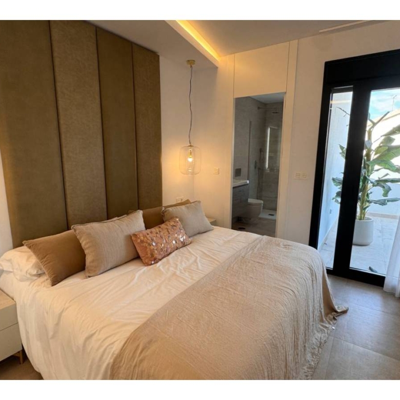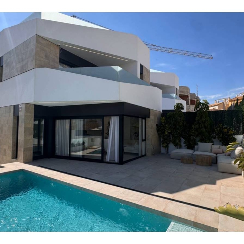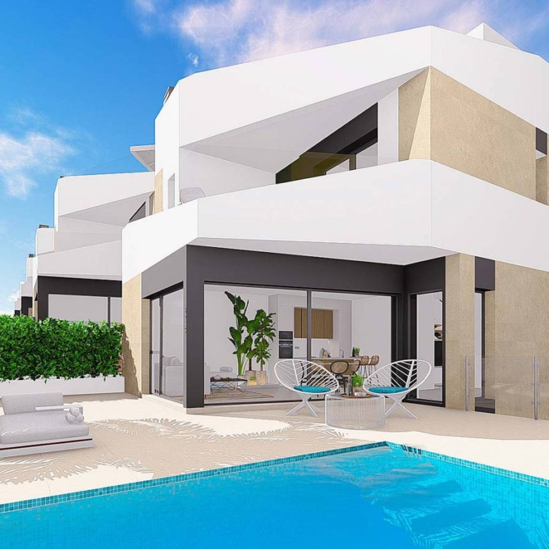 Independent villas in Orihuela Costa, Alicante, Costa Blanca A private residential consisting of villas with a solarium. The homes have a modern design with open spaces and large windows. They are distributed in 3 bedrooms with 3 bathrooms, spread over two floors, and a large garden with parking area, covered terrace and private pool. The bedrooms are very spacious and have built-in wardrobes. The master bedroom, measuring almost 20 meters, has a dressing room and an en-suite bathroom. These houses are located in Orihuela Costa, between Villamartin and Playa Flamenca, in a quiet area but very close to the main services in the area: golf, beach, shops, hospital, schools and a wide range of restaurants. Property ID: GH-24125 Price: €479,000 Property Size: 158 m2 Land Area: 178 m2 Bedrooms: 3 Bathrooms: 3 Property Type: Villa Property Status: For Sale