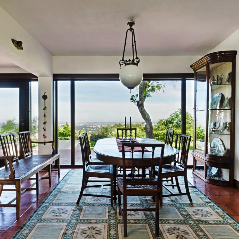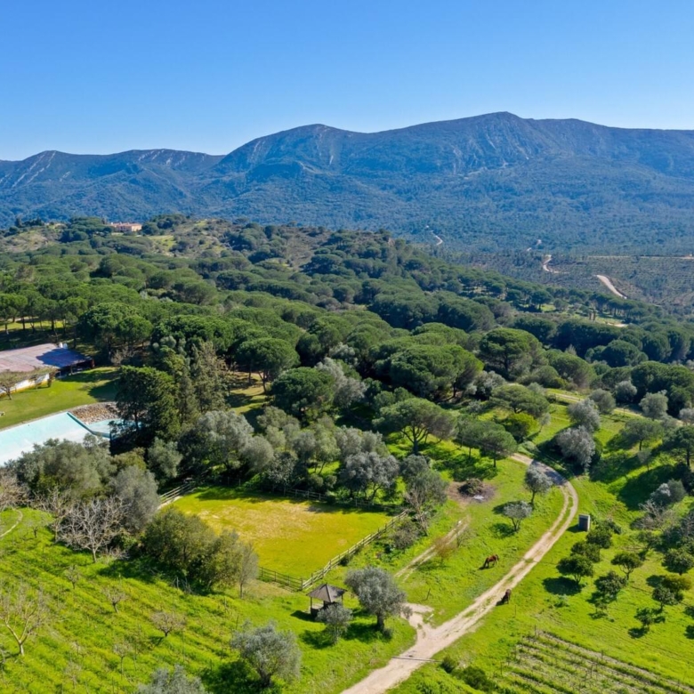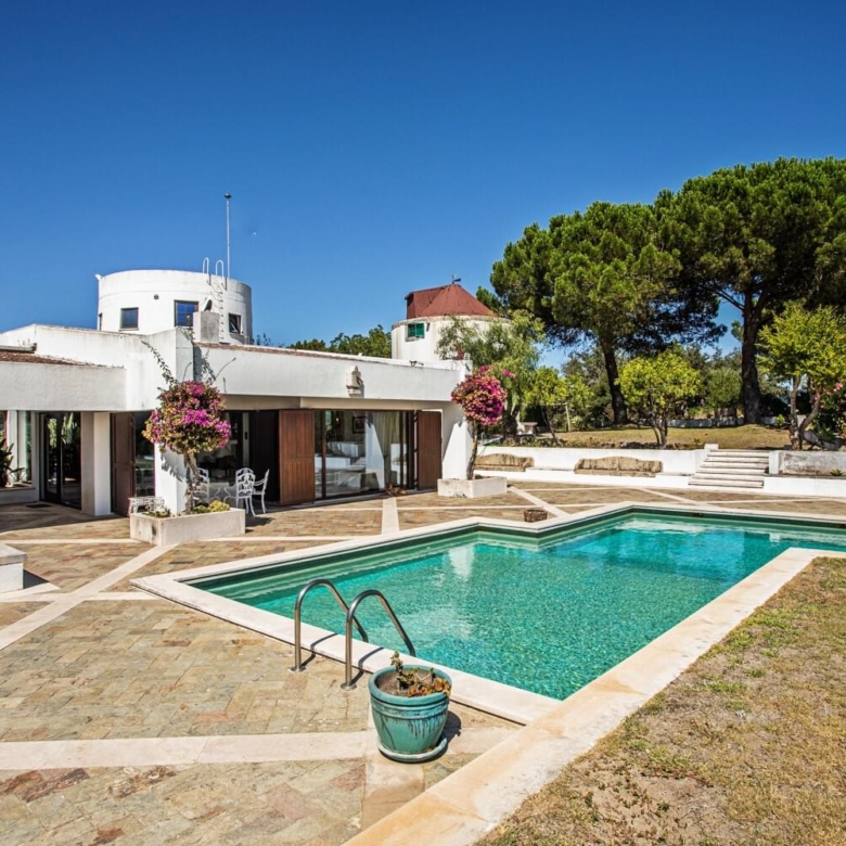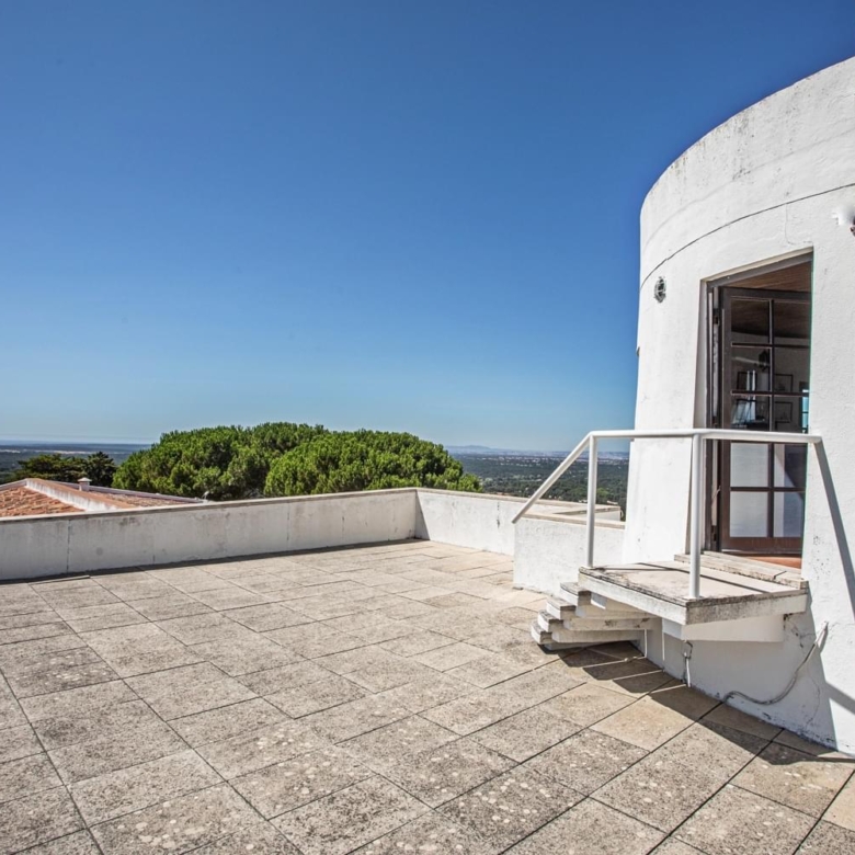 Unique farm, with 2 mills, located in the Natural Park of Serra da Arrabida, in Azeitao. Being the highest point of the area (geodesic mark), it offers a unique 360º panoramic view over the mountains, the sea and the city. It is possible to see the Castle of Sesimbra, the sea of Costa da Caparica, the Sintra’s Mountain, the Tagus River and its two bridges: 25 de Abril and Vasco da Gama. Providing total privacy (it is fenced), it is located 1.5 km away from Azeitao, around 10 kilometers away from the main beaches of the area, 25 kilometers away from Lisbon, 40 kilometers away from the airport, 13 kilometers away from Sesimbra and 15 kilometers away from Setubal. It is close to several golf courses, the nearest is less than 5 kilometers away. Inserted in a lot with around 4 ha, this farm has more than 3,000 sqm of covered area and it is composed by several buildings: - Main house (with 310 sqm): 4 bedrooms, living room, kitchen, 4 bathrooms and 3 fireplaces - Swimming pool and terrace in front of the main house with 200 sqm; - 1 stone mill from the 17th century, with 2 floors - 1 wood mill with 3 floors, around 12 sqm each; - Guest House with 3 apartments (114 sqm); - A second swimming pool with 80 sqm; - Dovecote, Kennels and henhouses with around 182 sqm; - An outdoor riding arena with around 760 sqm; - A 1000 sqm construction with 7 stables, washing area and bathroom - Games’ room, wine cellar and kitchen (2 wood ovens), workshop and storage; - Another construction with 1000 sqm (garage for cars and boats); - Other construction with 308 sqm; - 2 boreholes for water collection; - 1 Water tank with 30,000 litres and a cistern with 200,000 litres; - 1 Generator of 70 KVA; - Produces its own wine and has several fruit trees; Porta da Frente Christie’s is a real estate agency that has been operating in the market for more than two decades. Its focus lays on the highest quality houses and developments, not only in the selling market, but also in the renting market. The company was elected by the prestigious brand Christie’s – one of the most reputable auctioneers, Art institutions and Real Estate of the world – to be represented in Portugal, in the areas of Lisbon, Cascais, Oeiras, Sintra and Alentejo. The main purpose of Porta da Frente Christie’s is to offer a top-notch service to our customers. Property ID: PDF-PF28401 Price: €5,200,000 Property Size: 580.0 m2 Land Area: 37750.0 m2 Bedrooms: 10 Bathrooms: 9