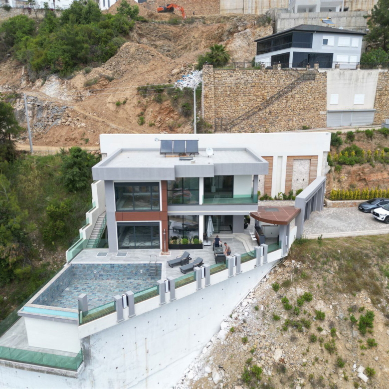 There are homes that you walk into and simply know they were designed to impress. This villa in Kargıcak is one of them. Set high above the coastline, with uninterrupted views over the Mediterranean, Alanya Castle, and the Taurus Mountains, it feels like a private retreat suspended between sea and sky. Every corner of the property radiates elegance: the infinity pool glitters in the sunlight, terraces stretch outward for endless evenings with friends, and the interiors reveal marble floors, sleek lighting, and vast glass surfaces that let the landscape flow right inside.Unlike a standard villa for sale in Alanya, this property tells a story of modern luxury shaped for both comfort and status. It was completed in 2024 with cutting-edge materials, full underfloor heating, and smart-home technology. Consequently, you don’t just live here — you control the atmosphere with a touch, you host with ease, and you wake every day to panoramas that remind you why people call the Mediterranean lifestyle priceless. Moreover, because the property qualifies for Turkish citizenship, it holds not only emotional but also strategic value for international buyers seeking a long-term connection to Turkey.Architectural character and first impressionsThis luxury villa in Turkey does not hide its ambition. From the moment you approach the gated entrance, the geometry of the building signals confidence: clean lines, generous terraces, and a south–east–west orientation that maximizes sunlight and view corridors. The 520 m² plot allows the villa to breathe; garden spaces surround the pool while wide balconies extend each floor outward.Glass dominates the façade, yet stone and warm textures ground the design. The infinity pool merges visually with the horizon, producing that magical effect of swimming directly into the Mediterranean. During the day, the water reflects blue skies; at sunset, it becomes a mirror of the glowing coastline.Inside, the open-plan living areas use marble flooring and recessed lighting to create a cool, airy feel. High ceilings and large surfaces of glass encourage the landscape to become part of the décor. Meanwhile, smart-home integration makes daily living effortless: lighting, heating, and even security respond to remote control.Interior layout — 5 rooms designed for modern lifeAt 285 m² net, the villa’s interior ensures comfort for every family member. Five spacious rooms can adapt to different needs: bedrooms, guest suites, or a private office.Living area:A bright open space connected to the terrace. Floor-to-ceiling windows frame the sea and castle views. The flow between indoor lounge and outdoor sitting areas keeps life connected to the climate.Kitchen and dining:Designed for both everyday meals and social evenings. The layout supports white goods, ample storage, and a central island. Moreover, the dining zone benefits from sliding doors that open to the terrace, so meals naturally spill outdoors.Bedrooms:Each room offers space for rest with access to views. The master suite includes a dressing room, modern en-suite bathroom, and a balcony overlooking both sea and mountains.Bathrooms:Multiple units finished with marble and modern fittings. Private Turkish bath and sauna facilities transform the villa into a wellness retreat.Flexibility:One of the five rooms easily becomes a study, gym, or media room. As a result, the villa adapts to changing lifestyles.Wellness and leisure — private luxury facilitiesThis villa transforms daily living into a resort experience. Beyond the infinity pool, you enjoy a private Turkish bath, sauna, and even a mini bar near the outdoor sitting areas. The flow of space encourages relaxation: after a swim, you pass directly to the terrace for drinks, or step into the sauna before cooling down under the night sky.Barbecue areas, shaded sitting corners, and open terraces provide variety for gatherings. Children’s pool sections make family life easier, while adults appreciate the calm of the infinity edge. Consequently, every generation finds its rhythm here.Smart technology and comfortFullunderfloor heating systemacross all rooms, ideal for year-round use.Smart home systemwith remote control, enhancing security and comfort.24/7 camera securityintegrated with the caretaker presence.Electric water heatingand modern white goods included.Generatorfor uninterrupted service.Because the property is brand new (built in 2024), all systems meet current standards. Maintenance worries remain low, and energy efficiency supports sustainable living.Location — why Kargıcak stands outKargıcak has become one of Alanya’s most prestigious residential zones. Perched on rising terrain east of the city center, it offers panoramic views that few neighborhoods can match. The atmosphere is quieter than central Alanya, yet you remain within comfortable reach of the city’s beaches, shopping, and cultural life.Distance to sea:2.5 km — close enough for daily swims, yet high enough for dramatic views.Access:Easy roads connect Kargıcak to Alanya center (about 15 minutes) and to Gazipaşa Airport (around 25 minutes).Surroundings:Vineyards, pine forests, and villa estates shape the landscape. International residents have established a strong community here, while local services like markets and restaurants keep routines practical.Consequently, Kargıcak balances exclusivity with accessibility. You live above the bustle, yet not cut off from everyday needs.Investment and citizenship potentialFor foreign investors, this villa represents more than a lifestyle purchase. Because of its value and legal status, it qualifies directly forTurkish citizenshipthrough investment. This adds a strategic layer: not only do you secure a luxury villa in Turkey, but you also gain the right to live, work, and travel with a Turkish passport.From an investment angle, the villa’s combination of location, facilities, and design ensures strong future resale value. Demand for sea view v