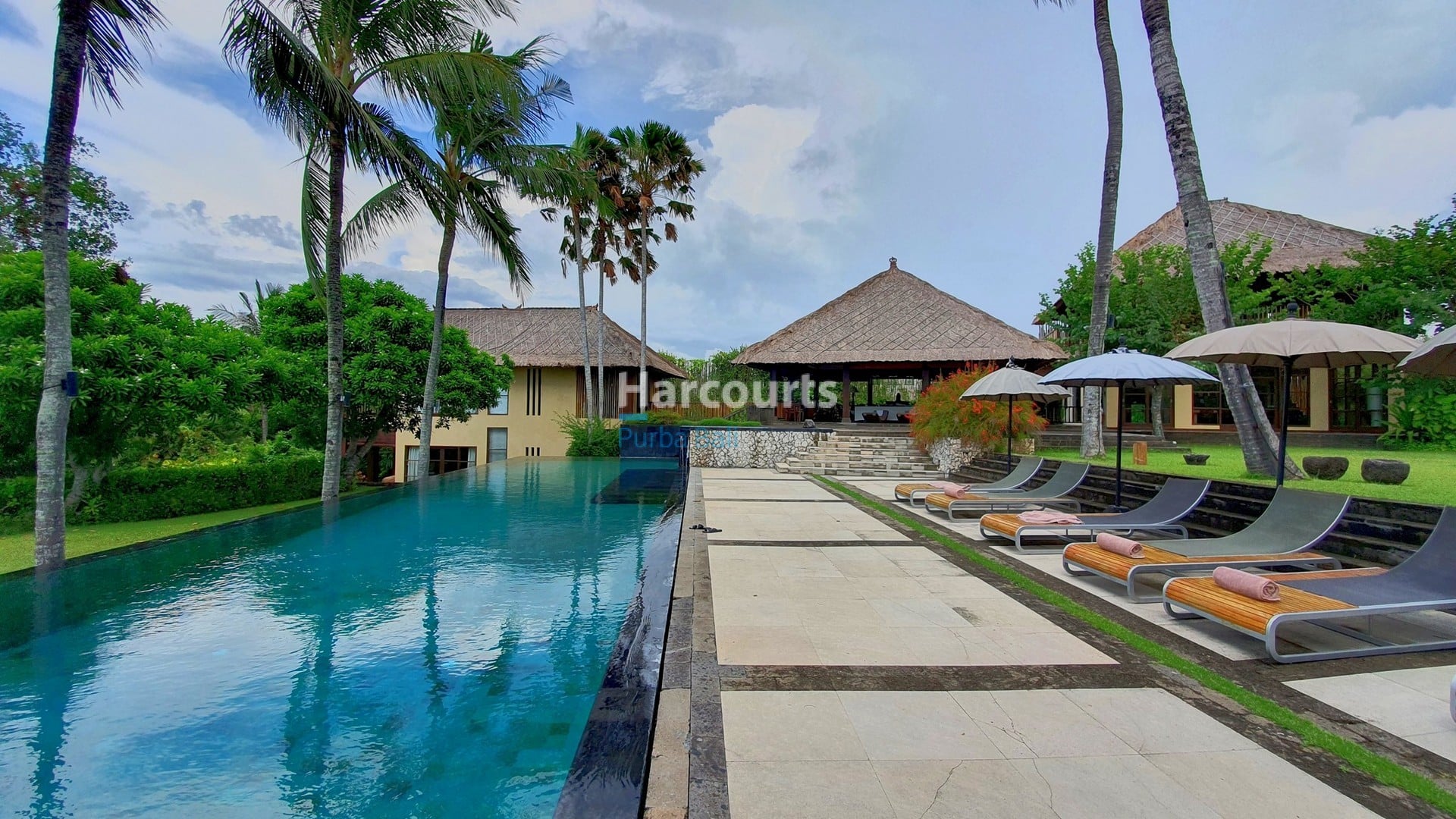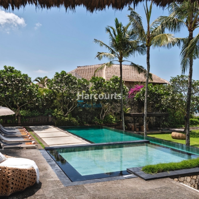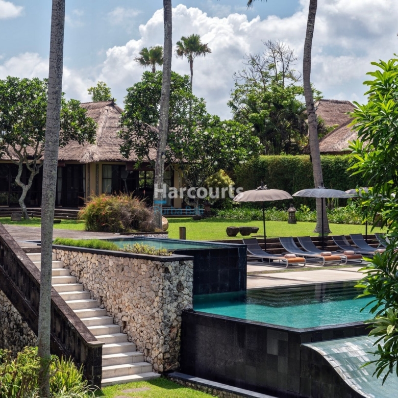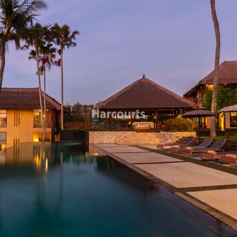 Positioned along the prestigious Pantai Lima beachfront in Pererenan, this extraordinary FREEHOLD property offers a rare opportunity to own a piece of Bali’s most exclusive coastline. Spanning an impressive 3,200 sqm with 955 sqm of meticulously designed living space, this villa is a masterpiece of traditional luxury. its timeless architecture, complemented by sophisticated furnishings, harmonizes perfectly with the vibrant coastal surroundings.The villa boasts five spacious bedrooms and six elegantly appointed bathrooms, offering comfort and privacy for family and guests. A 5 x 20-meter main pool, accompanied by a luxurious jacuzzi, serves as the centerpiece of the expansive outdoor area—perfect for hosting unforgettable gatherings with the ocean as your backdrop. inside, the villa’s seamless blend of indoor and outdoor living spaces includes a formal dining room, an inviting living area, and a cinema room that accommodates 16 for private screenings.Thoughtfully designed for convenience and functionality, the property includes staff quarters with ample storage, an office, and dedicated spaces for linen and dry goods. Set within a secure, five-villa gated estate, the villa provides both exclusivity and peace of mind.The beachfront location ensures unparalleled ocean views and direct access to Pererenan’s black sand shores, while the property’s expansive grounds offer endless opportunities for entertaining or simply enjoying Bali’s natural beauty. Extremely well-maintained and move-in ready, this villa is a rare gem, combining traditional elegance with modern comforts.Priced to reflect its exceptional rarity, this property represents a once-in-a-lifetime opportunity to secure a beachfront home in Bali’s most sought-after area.Nearby: Pantai Lima Beach 100 m, Baguccino 200 m, Pererenan Beach 300 m, Sol Rooftop 400 m, Wrong Gym 700 m, Baked Pererenan 1 km, Woods Pererenan 1.3 km, Passo by Nook 2.5 km