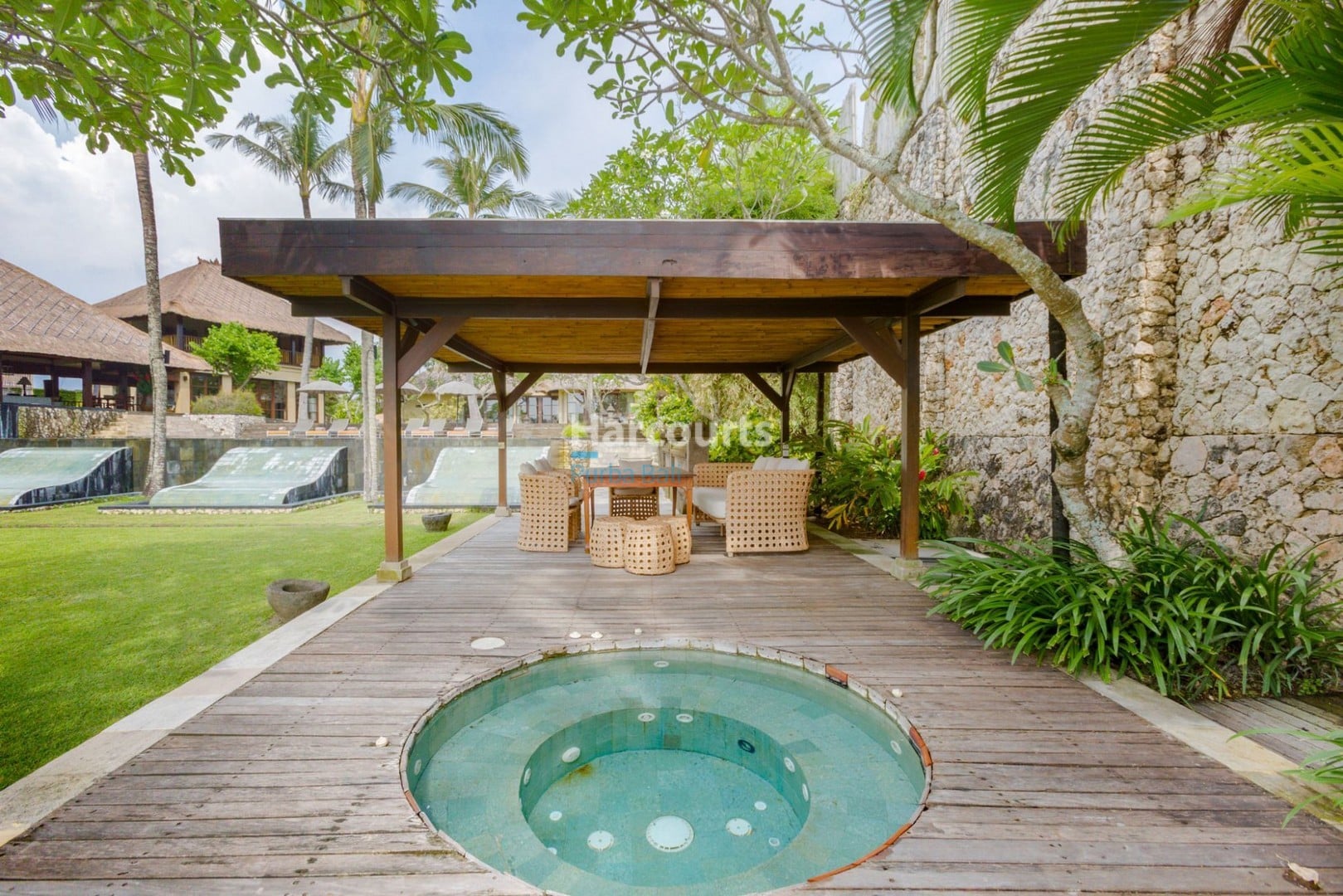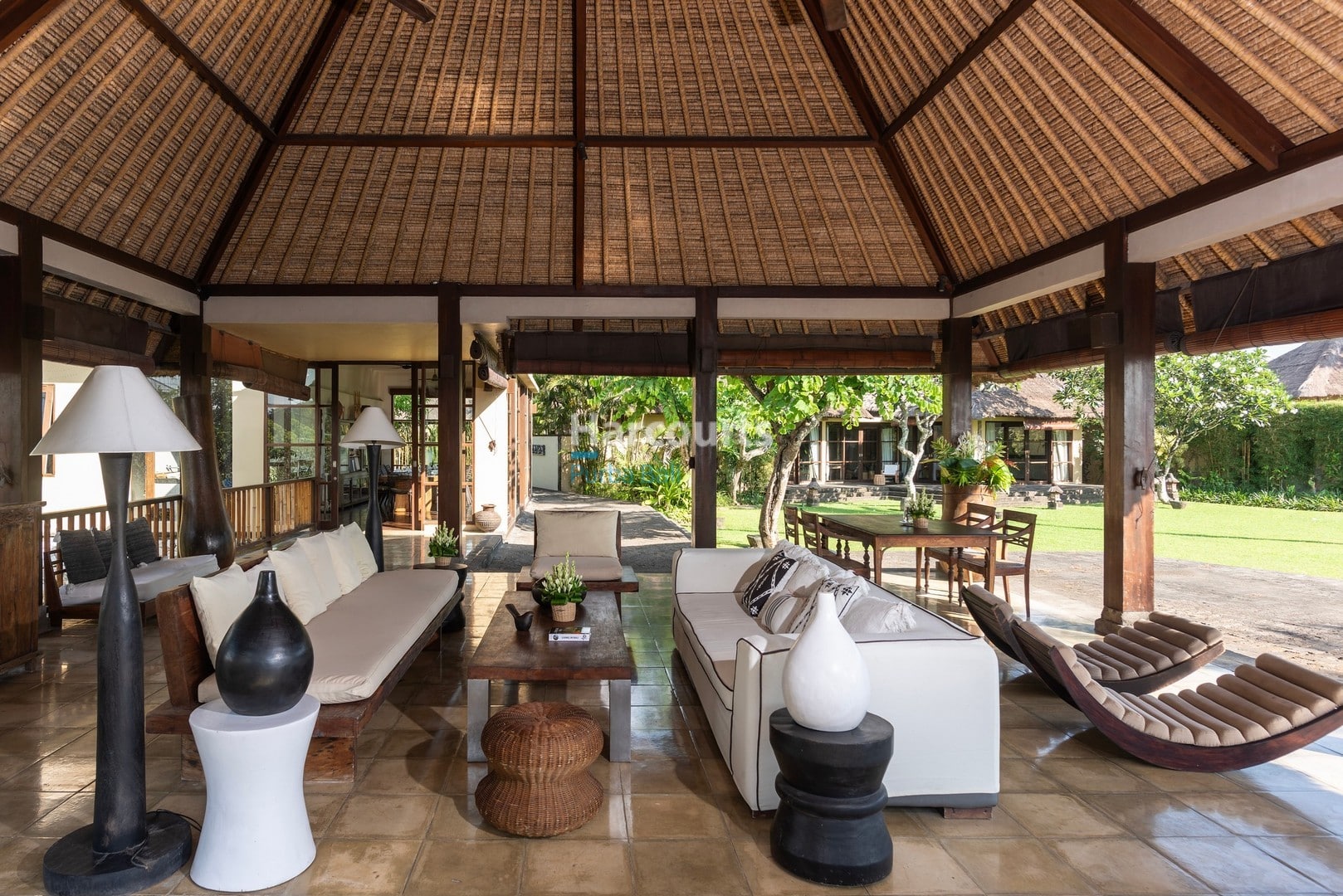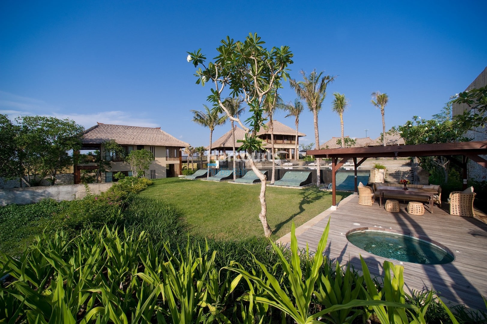 Positioned along the prestigious Pantai Lima beachfront in Pererenan, this extraordinary FREEHOLD property offers a rare opportunity to own a piece of Bali’s most exclusive coastline. Spanning an impressive 3,200 sqm with 955 sqm of meticulously designed living space, this villa is a masterpiece of traditional luxury. its timeless architecture, complemented by sophisticated furnishings, harmonizes perfectly with the vibrant coastal surroundings.The villa boasts five spacious bedrooms and six elegantly appointed bathrooms, offering comfort and privacy for family and guests. A 5 x 20-meter main pool, accompanied by a luxurious jacuzzi, serves as the centerpiece of the expansive outdoor area—perfect for hosting unforgettable gatherings with the ocean as your backdrop. inside, the villa’s seamless blend of indoor and outdoor living spaces includes a formal dining room, an inviting living area, and a cinema room that accommodates 16 for private screenings.Thoughtfully designed for convenience and functionality, the property includes staff quarters with ample storage, an office, and dedicated spaces for linen and dry goods. Set within a secure, five-villa gated estate, the villa provides both exclusivity and peace of mind.The beachfront location ensures unparalleled ocean views and direct access to Pererenan’s black sand shores, while the property’s expansive grounds offer endless opportunities for entertaining or simply enjoying Bali’s natural beauty. Extremely well-maintained and move-in ready, this villa is a rare gem, combining traditional elegance with modern comforts.Priced to reflect its exceptional rarity, this property represents a once-in-a-lifetime opportunity to secure a beachfront home in Bali’s most sought-after area.Nearby: Pantai Lima Beach 100 m, Baguccino 200 m, Pererenan Beach 300 m, Sol Rooftop 400 m, Wrong Gym 700 m, Baked Pererenan 1 km, Woods Pererenan 1.3 km, Passo by Nook 2.5 km