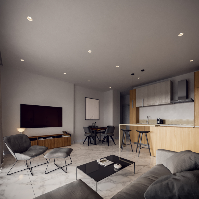 Nestled in a quiet residential area of Paphos, this four-floor development consists of 7 spacious and contemporary one- and two-bedroom apartments. With only 7 units in total, this superb project boasts just 2 apartments per floor. The top floor consists of a single two-bedroom penthouse with a large roof terrace offering unparalleled sea and mountain views. All residences are finished with an array of stylish features including marble and wooden floors, granite worktops, hand crafted wood kitchen and wardrobes and the finest sanitary fittings. The combination of these luxurious properties and the unbeatable location make this an ideal investment for either buy to let or permanent living.