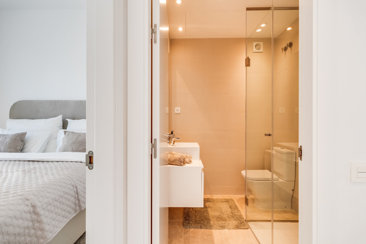 The master suite offers direct terrace access, and all bedrooms are generously sized. A staircase leads to a private rooftop terrace with stunning views of La Concha and the sea—ideal for relaxation or entertaining.