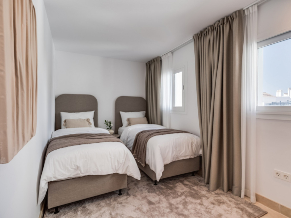 This elegant duplex penthouse offers a perfect blend of modern design, comfort, and panoramic views. Located in the sought-after Paraiso Pueblo development, the property features three bedrooms and two bathrooms, with high ceilings and an open-plan kitchen and living area that create a bright and spacious feel.
