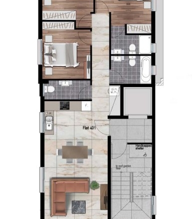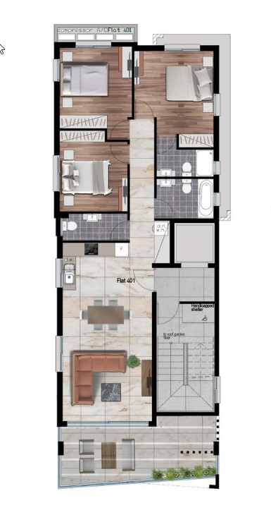 This project is located in one of the most elite and prestigious areas in Larnaca! The project will be composed of 3-bedroom apartments and a penthouse with a large roof terrace! Located at just few minutes from the famous Finikoudes beach and being close to public amenities, restaurants and malls, the project will offer its residents the best living experience! This unit has a roof garden of 44.5 square meters. Delivery-July 2025