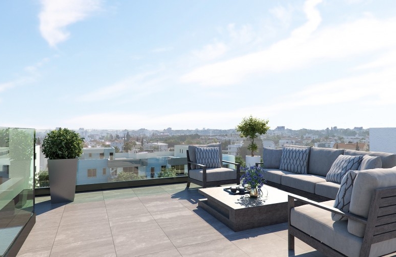 A boutique residential complex consisting of 5 whole-floor apartments located in the city center area just a few meters away from American Academy and 1 km from Finikoudes Beach. Each apartment offers 2 spacious bedrooms with ensuites and an open plan kitchen and living room along with a guest toilet offering a comfortable living for each resident with the utmost privacy. Each floor has 88 square meters of covered areas and 2 additional covered verandas of 25 square meters. The top floor apartment on the fifth floor offers an additional rooftop area on a surface of 60 square meters that is solely owned by apartment 501. The lovely residential neighborhood is quiet and family orientated surrounded by large luxury houses and residential properties. The project is very near to supermarkets, and private schools such as the American Academy and with immediate access to highways to Nicosia, Limassol, Paphos, and Ammochostos. Fully designed and studied by our professional team of Architects, Engineers, and Interior Designers. The modern design makes excellent use of features like top-quality Italian ceramic finish, unique glass balconies, and clever layout of living areas designed to offer optional space, privacy, and views of the prestigious Finikoudes Beach. The project will have an energy efficiency of grade “A” since a photovoltaic system will be installed on the roof to produce renewable energy. The photovoltaic panels through “net metering” will make sure owners benefit from significant savings in electricity consumption.This unit has a roof garden of 60 square meters. Delivery-November 2024