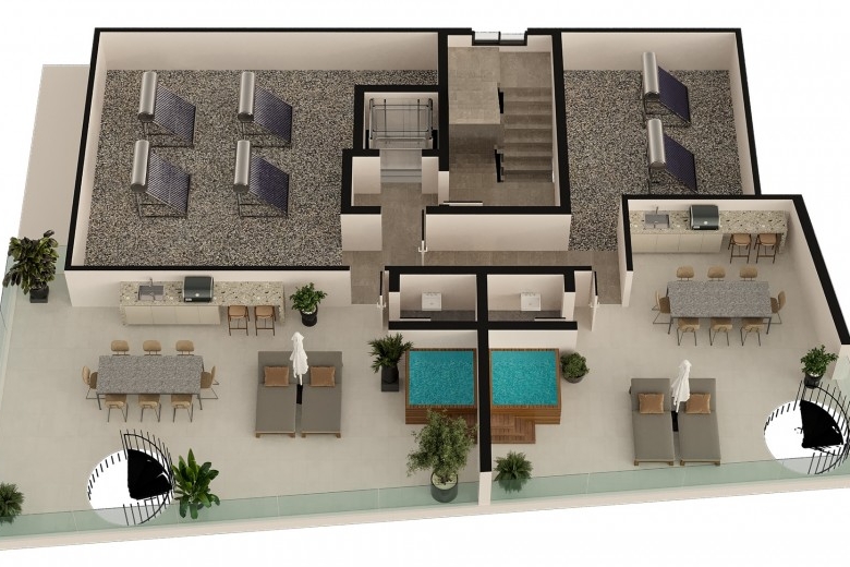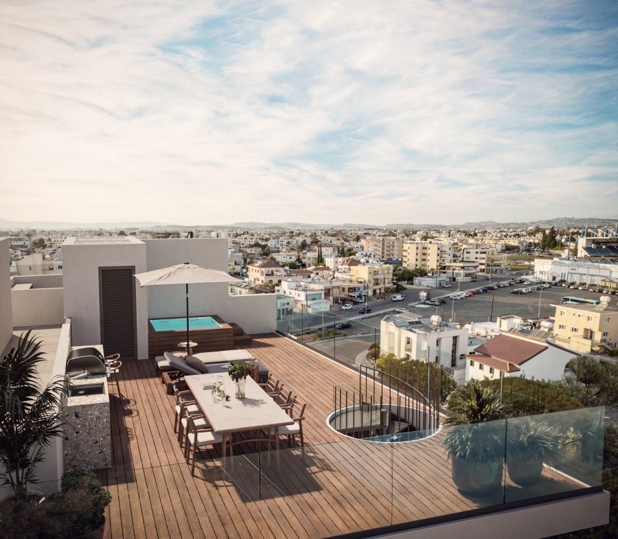 Ideally positioned in the city of Larnaca, the deluxe building is home to just five elegant apartments, offering an elevated standard of luxury living and residential comfort. This exceptional development introduces an exclusive selection of ultra-contemporary two and three-bedroom apartments, all set amidst lush greenery, embodying the seamless fusion of visionary architecture and sophisticated elegance. This unit has a roof garden 0f 64.5 square meters and a private swimming pool Delivery-May 2026
