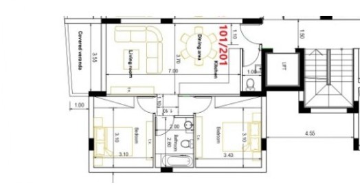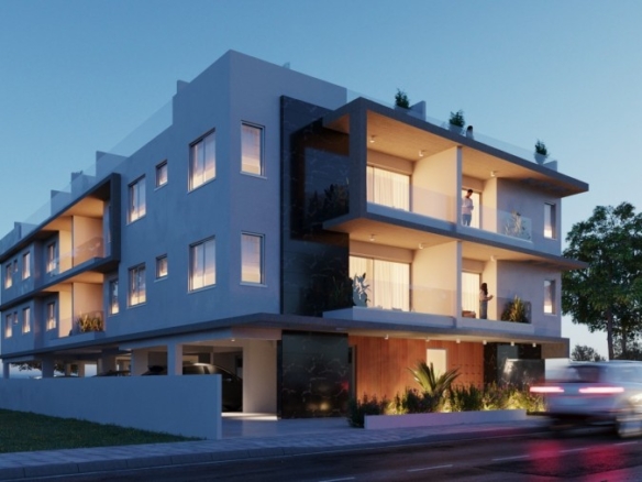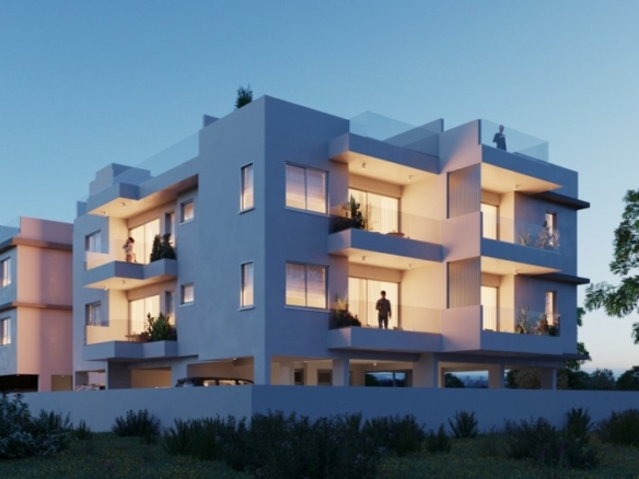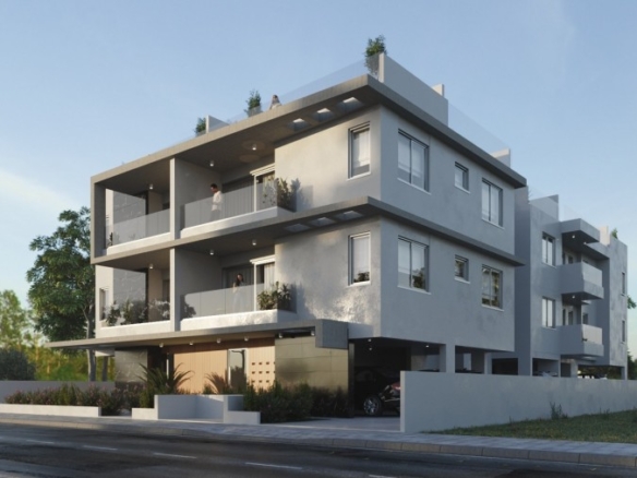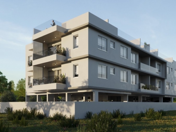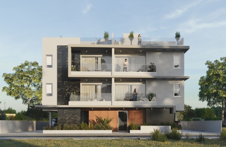 This contemporary residential development is located in Oroklini, Larnaca, just 2 kilometers from the beach and 8 kilometers from the city center. Comprising 14 apartments—eight one-bedroom and six two-bedroom units—the complex offers modern living spaces with open-plan kitchens, cozy bedrooms, and spacious verandas. Select second-floor apartments feature private roof gardens, providing additional outdoor space. Each unit includes a covered parking space and a storage room on the ground floor. The building is equipped with an elevator and boasts high-quality finishes such as marble flooring in the lobby, granite kitchen countertops, and double-glazed thermal aluminum windows. With an energy efficiency rating of A+, the project is designed for comfortable and sustainable living. Construction is expected to begin in early 2025, with completion anticipated by summer 2026.