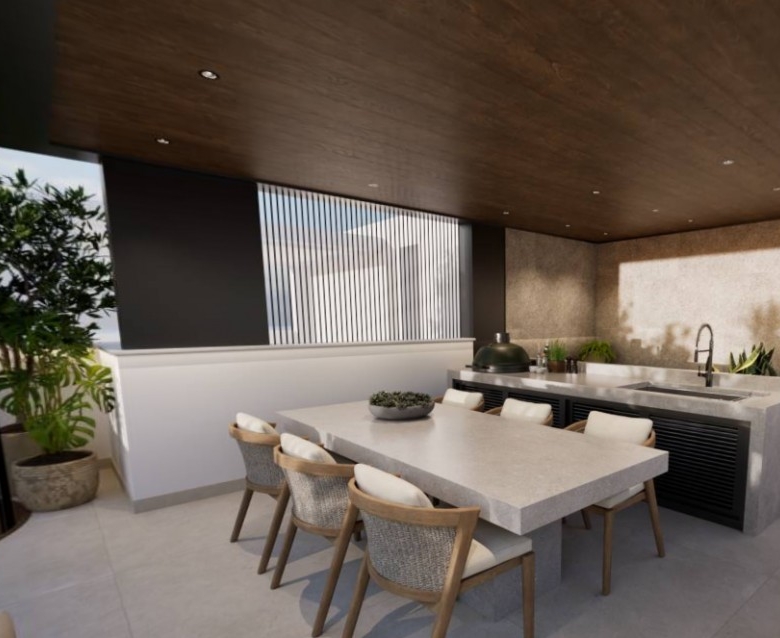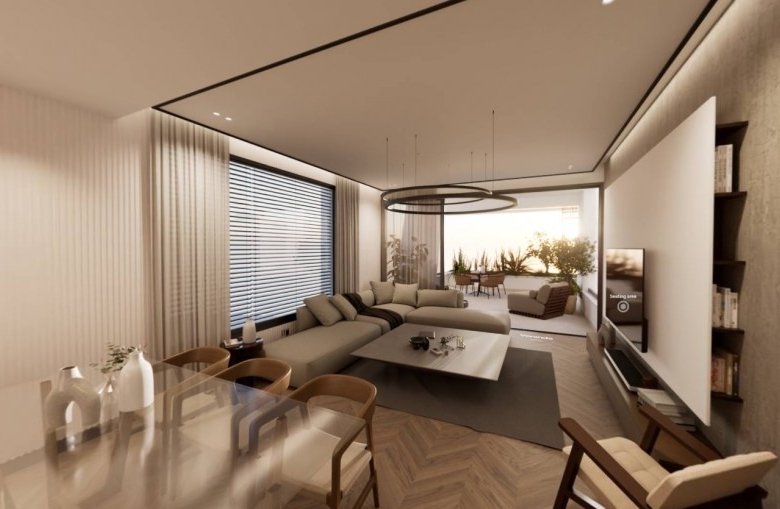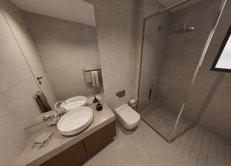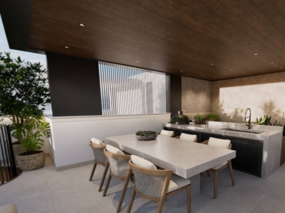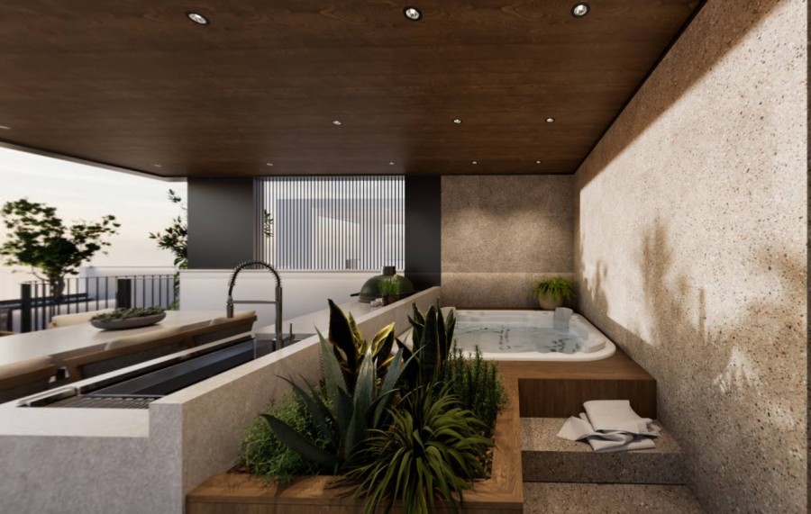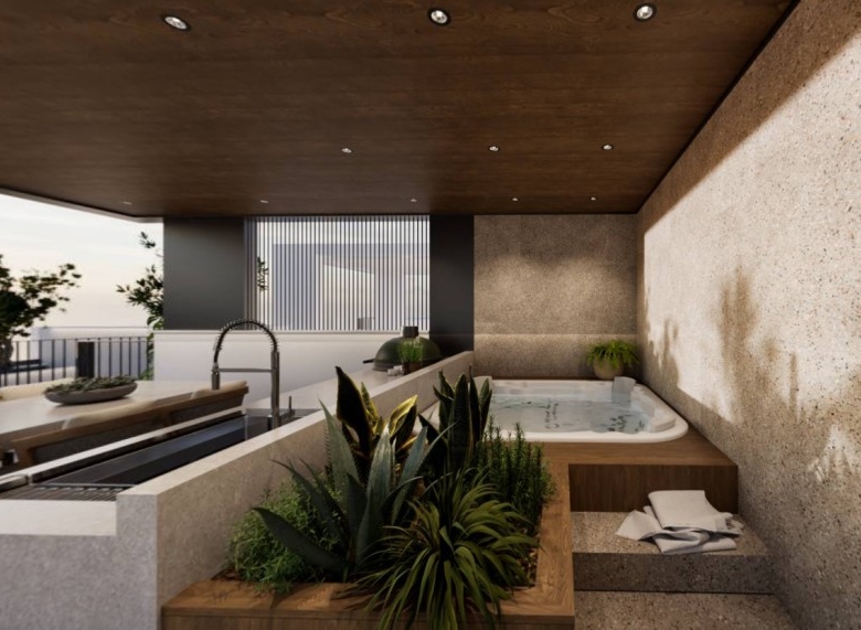 This exquisite 3-bedroom penthouse offers a spacious open-plan layout, seamlessly connecting the living areas to expansive covered balconies with designated green spaces. Floor-to-ceiling windows provide an abundance of natural light, while a private roof garden elevates the experience with a jacuzzi, barbecue area, and additional covered space accessible from both the veranda and main building entry points. Built to the highest standards, the residence boasts an “A+” energy efficiency rating, featuring solar panels, advanced insulation, provisions for electric car chargers, and energy-efficient appliances for sustainable and cost-effective living. High-quality finishes, fully customizable interiors, and an exclusive Interactive Interior Design experience allow for a tailor-made home. The building is constructed with reinforced concrete for durability and safety, complemented by thermal and moisture insulation, double-glazed windows, and modern electrical installations, ensuring a refined and eco-conscious living environment. This unit owns roof garden of 52 sqm (37 sqm covered, and 15 sqm uncovered) and private jacuzzi. Completion – Q2 2026.