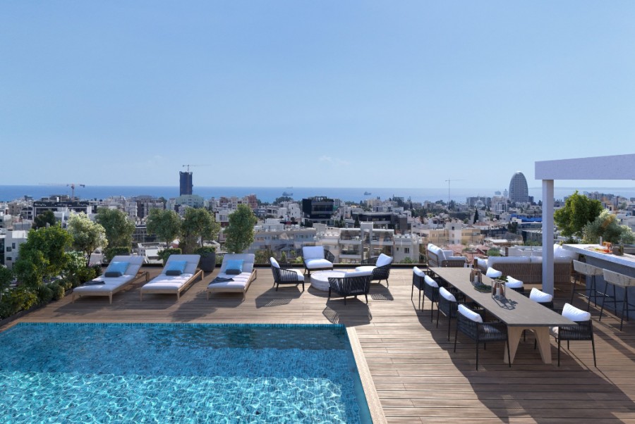This exclusive development features 9 apartments ranging from 2 to 6 bedrooms, each designed with meticulous attention to detail and high-quality finishes. The apartments boast high-quality porcelain tiles and laminated parquet floors, along with modern Italian high-standard kitchen cabinets and wardrobes. The ceilings in kitchens, toilets, and corridors will be adorned with gypsum boards and built-in spotlights, creating a sleek and modern look. The aluminum windows offer thermal insulation performance with double-glazed glass for added energy efficiency. Each flat will have a solar panel for hot water, a reservoir tank, provision for a water softener, and a pressurized system to ensure optimal water pressure. Experience a new level of luxury living.This Penthouse has a roof garden area of 107 sqm with a private swimming pool and extra room with a bathroom. It also comes with a ground floor studio with a bathroom. Delivery – August 2026