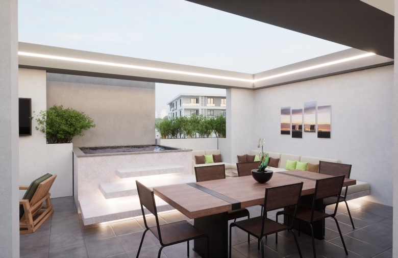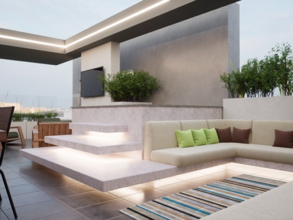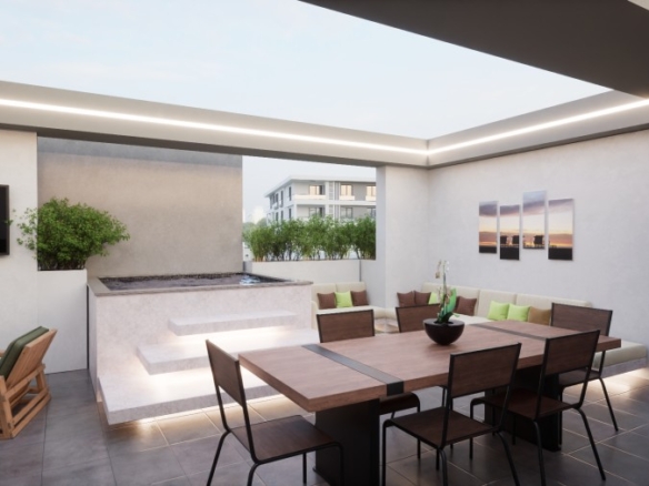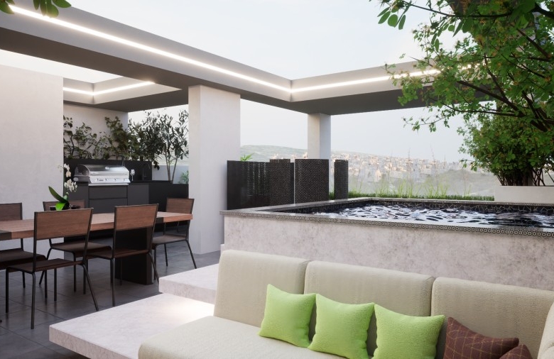 This exquisite two-bedroom penthouse combines modern design with outdoor luxury. The apartment features a spacious open-plan layout, large windows, and premium finishes throughout. The master bedroom includes an ensuite bathroom, while the second bedroom offers flexibility for various needs.The highlight is the private roof garden, an ideal space for relaxation or entertaining, offering panoramic views of the lush surroundings and city skyline. Residents benefit from energy-efficient amenities, secure parking, and proximity to beaches, shopping, and key city attractions, all within a tranquil green zone.Perfect for those seeking a sophisticated, serene lifestyle close to urban conveniences.Completion – December 2026.