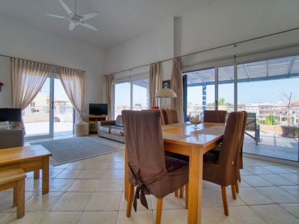Welcome to the luxurious world of this spacious 3-bedroom penthouse, nestled in the pristine ‘Limnaria Gardens’ complex, located in the vibrant and tourist-friendly area of Paphos. Immerse yourself in the perfect blend of comfort and convenience, with the nearest beach just a leisurely stroll away.Step into a well-designed living space that includes a fully equipped kitchen, a warm and inviting living room, and three bright bedrooms. The master bedroom boasts an en-suite, ensuring a touch of exclusivity. Additionally, there’s a well-appointed main bathroom to cater to your needs.This penthouse is not just a residence; it’s a statement of modern elegance. Fully furnished with contemporary features, high ceilings, and ceiling fans, every detail is designed for a sophisticated lifestyle.Step outside onto the generous verandas and be greeted by the inviting communal swimming pool. Picture yourself hosting delightful gatherings with the built-in barbecue area, creating unforgettable moments with friends and family.With its modern amenities, high level of privacy, and proximity to the beach, this penthouse at ‘Limnaria Gardens’ is more than a home – it’s a sanctuary for those who appreciate the finer things in life. Experience the epitome of luxury living in Paphos.