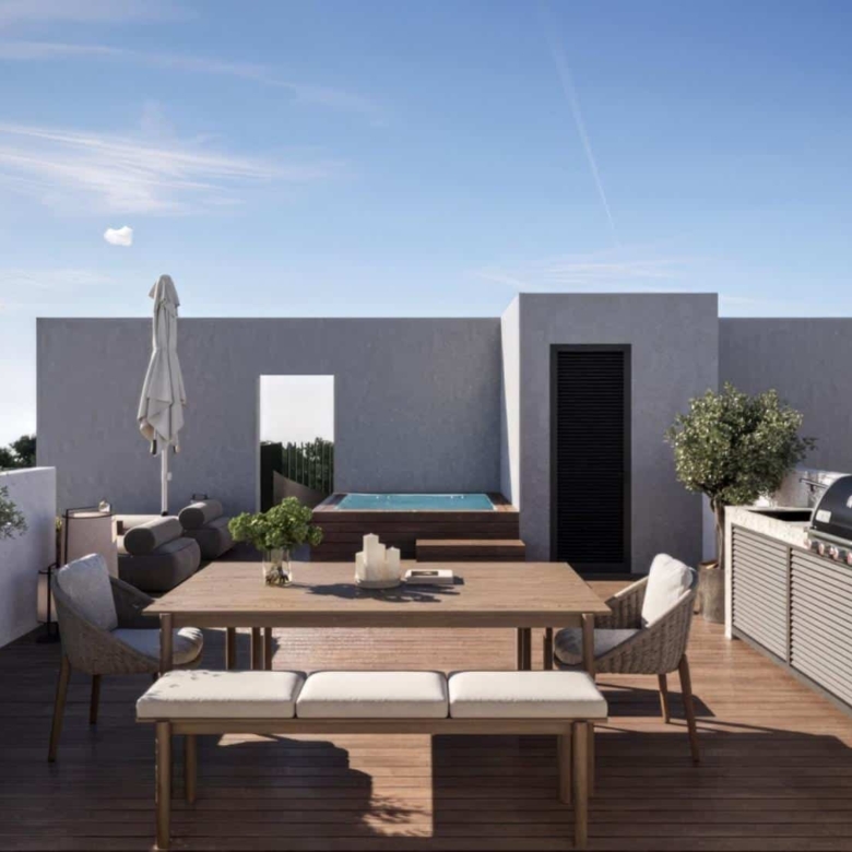 Amazing 2 bed penthouse with spacious 52㎡ roof garden. Located in the flourishing residential sector of Aradippou, connected to Larnaca’s vibrant core, the property sets a new standard for modern living. This groundbreaking development presents a collection of ultra contemporary two and three bedroom apartments in a prime, central location, where visionary architecture seamlessly blends with stylish elegance. Thanks to its winning combination of convenience, accessibility, and modern comfort, the property is poised to become a distinctive architectural landmark in the area and stands out for its high-end aesthetics and the deluxe lifestyle it offers to residents.