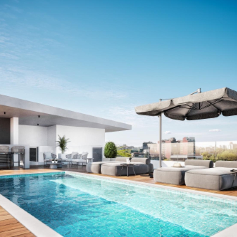 Spacious and stylish 3+1 bedroom penthouse of a 6 floor building in the heart of Nicosia, offering 150㎡ of high standard living space. Each bedroom features a private en suite bathroom. Includes an extra office room, a premium kitchen, internal garden area, and private building entrance. Enjoy the convenience of photovoltaics, two dedicated parking spaces, and a prime central location. The property also offers exclusive access from the 6th floor to the rooftop of the 7th floor, featuring a private swimming pool and barbecue area, ideal for relaxation and entertaining. A perfect blend of luxury, privacy, and sustainability.