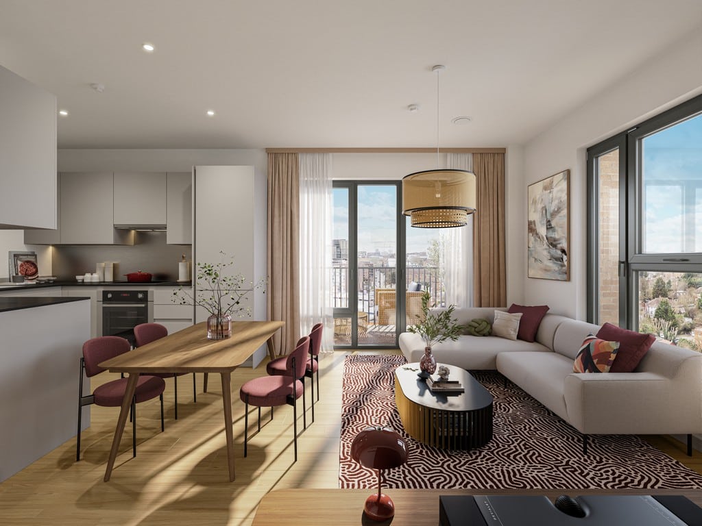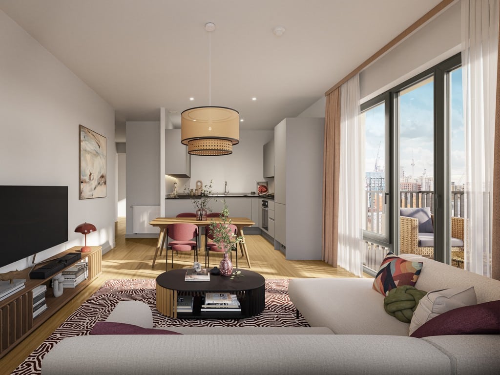 Set within a vibrant and well-connected community, each home in Stephenson House boasts spacious open-plan layouts, flooded with natural light and complete with private balconies or terraces—perfect for entertaining or unwinding after a long day. Rising up to 21 storeys and surrounded by landscaped communal gardens, the development offers residents a peaceful green oasis above the city.