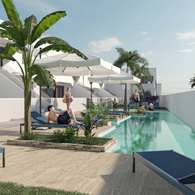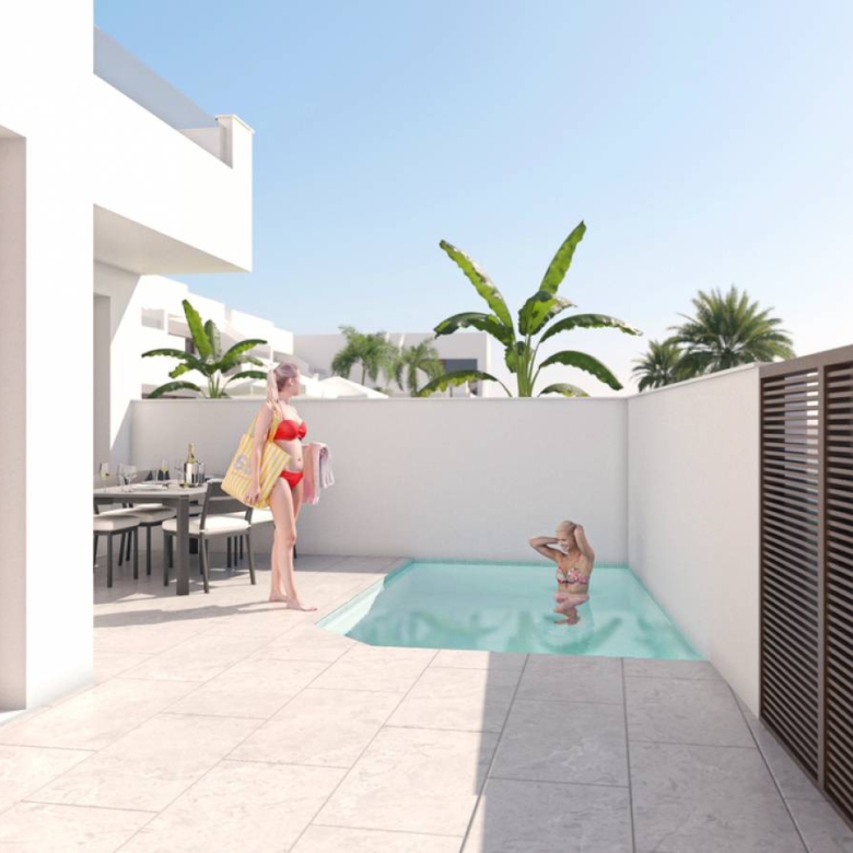 2 Villas with private pool in Pilar de la Horadada, Costa Blanca An exclusive residential where the design and comfort of the homes prevail. 20 top-quality modern apartments with 2 or 3 bedrooms on the ground floor and on the first floor with a solarium of more than 80 m2 that offers great privacy. This project also has 2 villas with private pool and closed garage, 3 bedrooms, 2 bathrooms and toilet. The residential has a common garden area with a swimming pool and each apartment has large terraces where you can enjoy the sun all year round. Another important feature of this project is the bicycle storage room in the common area, with a capacity of 2 bicycles per home. Located on the ‘Del Pilar al Mar’ boulevard, it is a route that starts in the town center and ends on the beaches of Torre de la Horadada. The route is 3 km. and it can be done on foot, by bicycle or on skates. CHARACTERISTICS 2 and 3 bedrooms.2 bathrooms.First qualities.Kitchen equipped with appliances.LED halogens throughout the interior of the house.Solar Control Windows.Underfloor heating in bathrooms.Community area with pool.modern construction.Parking lot. Property ID: GH-24232 Price: €365,900 Property Size: 220 m2 Land Area: 300 m2 Bedrooms: 3 Bathrooms: 3 Property Type: Apartment Property Status: For Sale