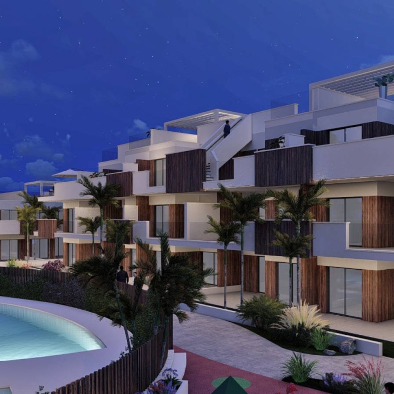 Penthouses in Pilar de la Horadada, Costa Blanca The new residential will have 3 blocks, two types of BUNGALOWS ground and upper floor and a block of apartments. The common areas of the residential will be made up of large garden areas, a modern swimming pool plus a Jacuzzi, a children’s area and a gym. All homes will have a private parking space and private storage room in the basement. The BUNGALOW-type homes have a ground floor with a private garden and an upper floor with a private solarium (with a pergola and a closed summer kitchen with a fully finished built-in shutter). The apartment-type houses consist of: ground floors with a private garden, first floors with a large terrace and PENTHOUSES with a terrace and private solarium (with built-in pergola, closed summer kitchen with shutter, private Jacuzzi, artificial grass).The residential is surrounded by all the services to be able to enjoy an unbeatable climate, good gastronomy, good services, a quiet area and the best beaches throughout the year. Property ID: GH-24156-D Price: €339,900 Property Size: 138 m2 Land Area: 138 m2 Bedrooms: 2 Bathrooms: 2 Property Type: Apartment Property Status: For Sale
