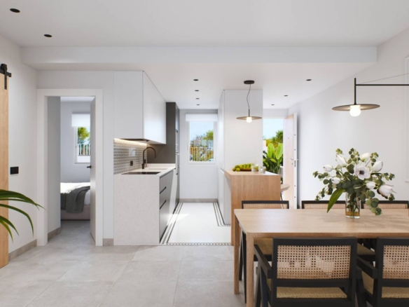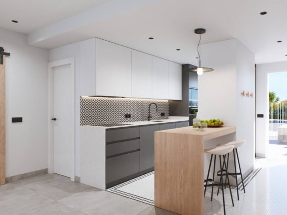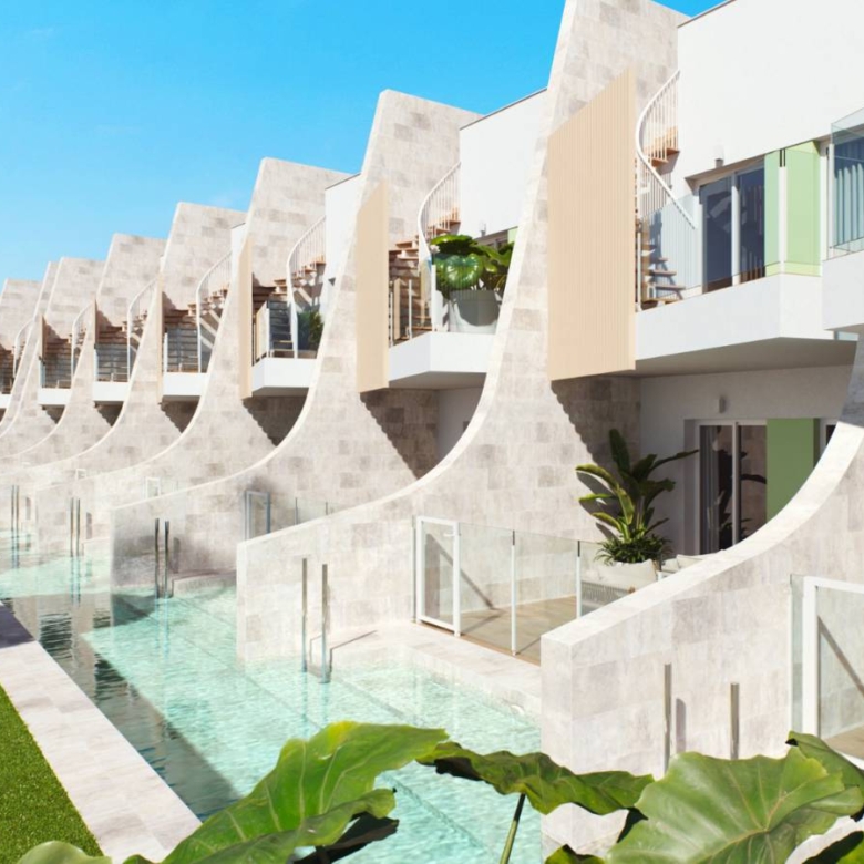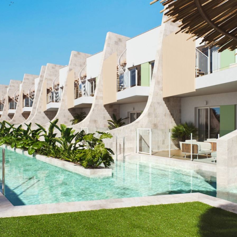 Bungalows in Pilar de la Horadada, Costa Blanca An exclusive and unique residential complex with 30 spectacular bungalows, designed and thought to enjoy a privileged environment with friends. The ground floor homes have direct access to the pool as it is right in front of their terraces. And the upper floor homes have a solarium with unbeatable views. The Residential has an excellent common area with a large longitudinal swimming pool, as well as a large green area. All this with the unbeatable SOUTH orientation. Pilar de la Horadada is a municipality located in the extreme south of the province of Alicante, bordering the Valencian Community with the autonomous community of the Region of Murcia. Economically, its development is due to two fundamental pillars: agriculture and residential tourism, without forgetting the commercial and service sector. It also owes a lot to the privileged climate that keeps the area in a kind of ‘constant spring’, with average temperatures of 18 °C, soft breezes and the sun shining more than 3,200 hours a year. Property ID: GH-24214 Price: €249,900 Property Size: 74 m2 Land Area: 95 m2 Bedrooms: 2 Bathrooms: 2 Property Type: Apartment Property Status: For Sale