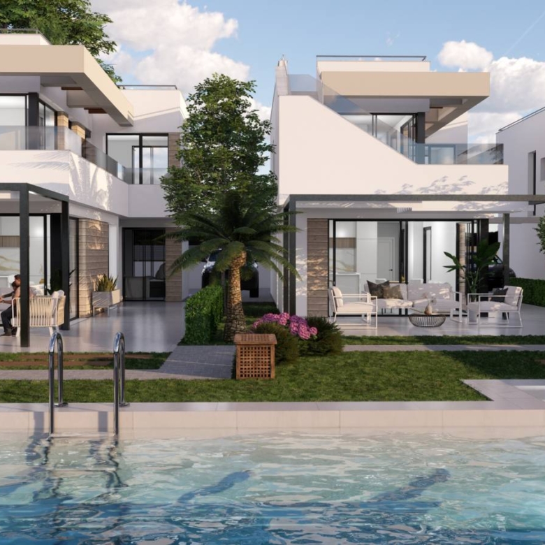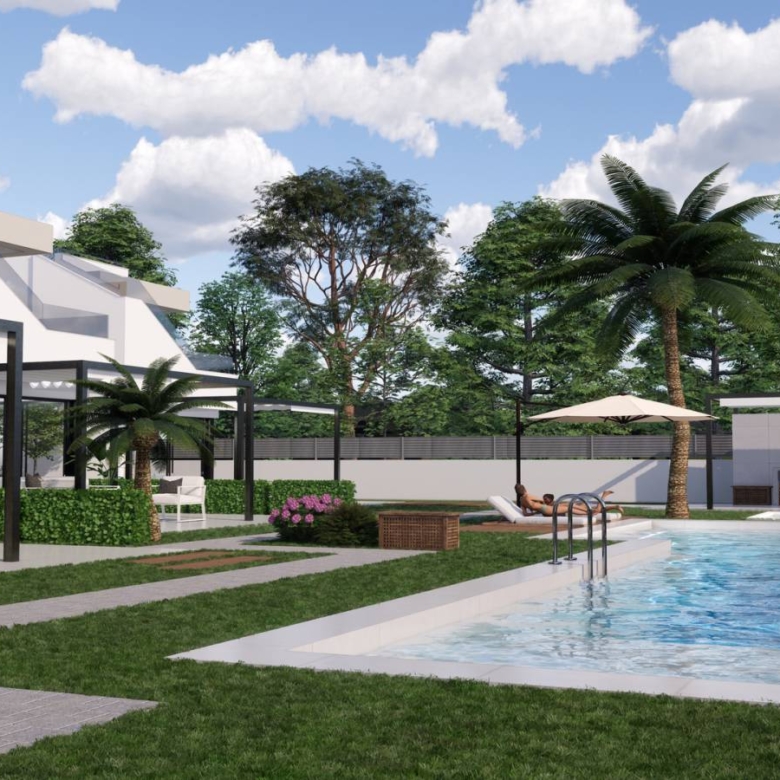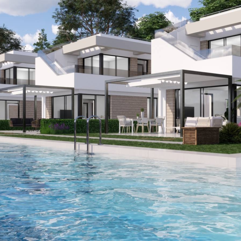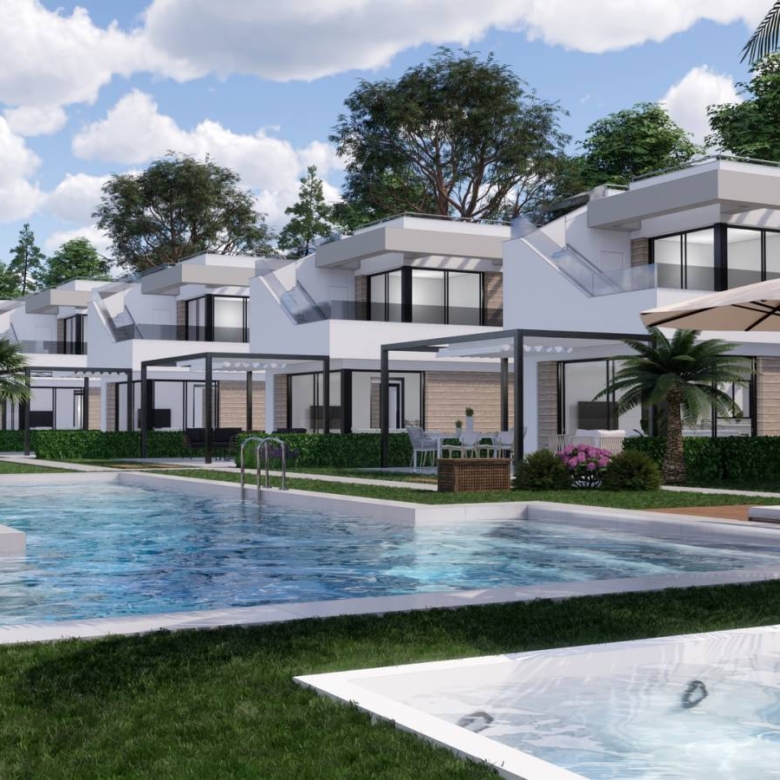 Semi-detached villas in Lo Romero Golf, Pilar de la Horadada, Costa Blanca Semi-detached houses with a distribution of 3 bedrooms and 3 bathrooms, in addition to its 45 m2 terrace, the house will have all kinds of amenities to make your stay a wonderful one. It is located just 100 m from the golf course and 5 min from entertainment venues, including the beach, just 5 km away. It has southeast orientation. In addition, it has a private parking space and fitted wardrobes. And not only that, these villas have at your disposal a community pool, an ideal area for barbecues and an outdoor lounge area to relax. Pilar de la Horadada is a municipality located in the extreme south of the province of Alicante, bordering the Valencian Community with the autonomous community of the Region of Murcia. It is the southernmost municipality of the Valencian Community on the border with the Region of Murcia. Despite being a relatively young municipality, in its more than 30 years of existence as an independent municipality, projects have been undertaken to provide the town with the necessary services. Economically, its development is due to two fundamental pillars: agriculture and residential tourism, without forgetting the commercial and service sector. It also owes a lot to the privileged climate that keeps the area in a kind of ‘constant spring’, with average temperatures of 18 °C, soft breezes and the sun shining more than 3,200 hours a year. Property ID: GH-307537 Price: €339,000 Property Size: 116 m2 Land Area: 172 m2 Bedrooms: 3 Bathrooms: 3 Property Type: Villa Property Status: For Sale