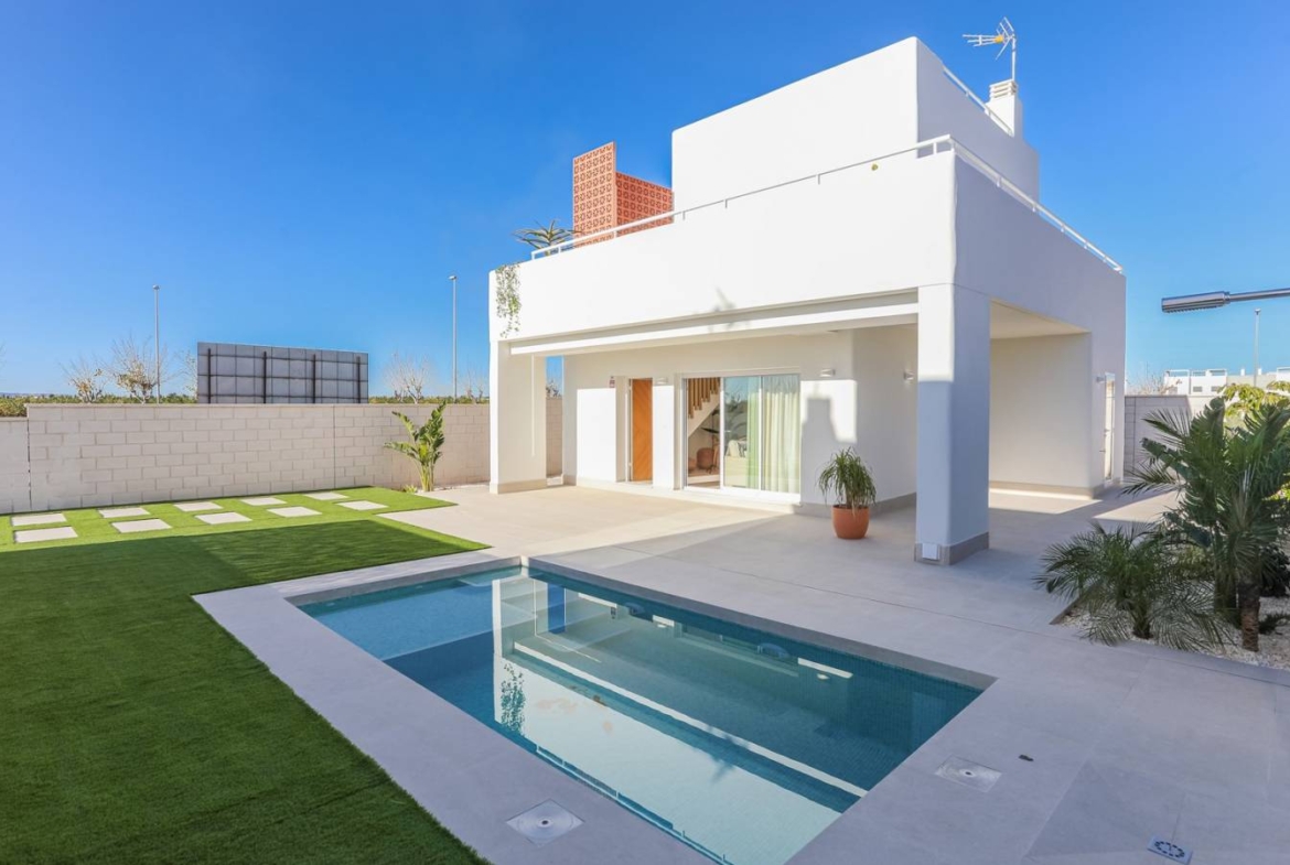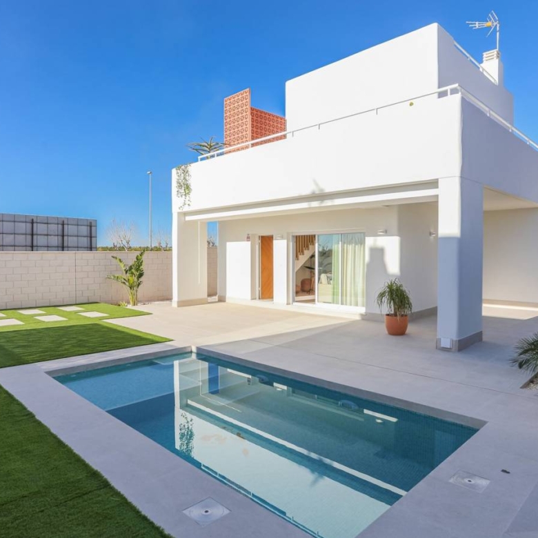 Villas for sale in Pilar de la Horadada, Costa Blanca, Spain The residential consists of 17 independent segregated properties located in Pilar de la Horadada, surrounded by all services and only a few minutes from the beach. Each property has 3 bedrooms, 3 en-suite bathrooms, large open plan living room with kitchen all located on two floors. The exteriors have a large landscaped plot, solarium and private swimming pool in all homes. You will find the best Mediterranean style adapted to modern design. Pilar de la Horadada is a Spanish municipality located in the extreme south of the province of Alicante, bordering the autonomous community of the Region of Murcia. It is the southernmost municipality of the Vega Baja del Segura region and of the entire Valencian Community. Property ID: GH-307706 Price: €389,000 Property Size: 118 m2 Land Area: 203 m2 Bedrooms: 3 Bathrooms: 3 Property Type: Villa Property Status: For Sale
