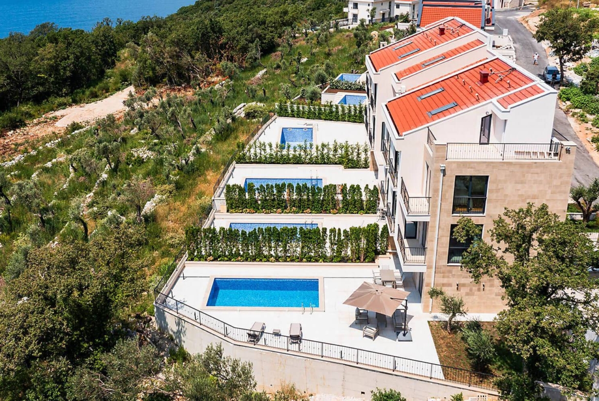 Welcome to Poljana Olive Homes, a collection of exquisite modern townhouses in the prestigious area of Reževići, along the stunning Budva Riviera, near the world-famous Sveti Stefan island. These townhouses offer an unparalleled Mediterranean lifestyle, combining luxury, comfort, and convenience in one of Montenegro’s prime locations.Situated along the spectacular Budva Riviera, residents of Poljana Olive Homes enjoy the proximity to some of Montenegro’s most breathtaking beaches. With easy access to Budva’s wide range of amenities—including restaurants, shops, and entertainment—these townhouses promise a Mediterranean lifestyle like no other.Each townhouse is thoughtfully designed to provide comfort and functionality, offering a total of 4 spacious bedrooms with en-suite bathrooms across three floors and an attic. Key features include:Private swimming pool and BBQ area, perfect for outdoor entertainingParking space for two carsEnergy-saving panoramic windows for breathtaking viewsCCTV, intercom, and multi-split air conditioning for security and comfortNatural stone façades, oak parquet flooring, and fine finishes throughoutVilleroy & Boch sanitary ware and modern plumbing for a touch of eleganceEnergy-efficient systems, including a bioseptic and water purification system for the poolThe ground floor features an open-plan kitchen and living area with a terrace offering stunning sea views, while the first floor houses a master bedroom with a walk-in closet and a second en-suite bedroom with panoramic sea views.The attic provides additional living space, with options for an extra bedroom, office, or wardrobe. The -1 floor includes a family room with a second kitchen, an additional bedroom with en-suite, and access to the pool and recreation area.Avaliable townhouses:Townhouse A, total area 223m², total land area 360m², price 760.000€Townhouse B, total area 220m², total land area 235m², price 720.000€Townhouse C, total area 220m², total land area 235m², price 720.000€Montenegro’s real estate market is booming, with the potential for up to 20% capital appreciation. These townhouses offer an excellent investment opportunity with an annual passive income of 8-10% through the strong tourist demand. Our comprehensive property management services handle everything from maintenance to rental management, ensuring a hassle-free experience for owners. Plus, no purchase tax is applied, as this is a direct sale from the developer.Poljana Olive Homes offers additional options, allowing you to customize your townhouse to your preferences:Solar panelsPergola over the parking areaFully fitted kitchen with appliancesBuilt-in wardrobesComplete furnishing with indoor and outdoor furnitureYou are eligible for Montenegrin residency by purchasing a townhouse, adding further value to your investment. Poljana Olive Homes combines luxury, functionality, and sustainability in one of Montenegro’s most desirable locations, making it the perfect choice for your primary residence, vacation home, or profitable rental property.Don’t miss the opportunity to own a piece of the Mediterranean paradise! Contact us for more information or to schedule a viewing of Poljana Olive Homes.