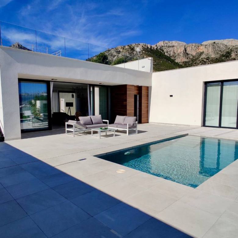 Beautiful villa in Polop de la Marina, Costa Blanca, Alicante Detached house distributed on one floor with option of 3 or 4 bedrooms, fully equipped kitchen, 6X3 pool, solarium, outdoor bar, garden, air conditioning, automatic gate. Located in the ‘La Alberca’ urbanization. Plot between 427m2 and 489m2. Its ‘L’ -shaped design allows a great use of the hours of sunshine and the fantastic Mediterranean climate, providing luminosity in all rooms of the house. Its views of the bay of Altea and the mountains are unbeatable; without a doubt, a pleasure for the senses. It has all the facilities that can be expected in a villa on the Costa Blanca. In addition, clients are offered the possibility of customizing and adapting the property to their liking, being able to choose materials, finishes, qualities or even the distribution of the elements of the plot. Possibility of making a basement, obtaining an additional 114m2. Polop de la Marina has beautiful natural spaces and an interesting heritage, it is one of the most striking towns in the province of Alicante, due to the spectacular landscape it exhibits. This curious little town is located in the central area of the Marina Baja region, and from its position the Ponoch massif and the Salt and Canet de Xirles ravines stand out, which, together with their urban complex, create an extraordinary picture. The image of the old town of the town is especially striking, on a hill that invites tourists to get closer and closer, to discover all the history and culture that lies within. Property ID: GH-275254 Price: €592,000 Property Size: 224 m2 Land Area: 430 m2 Bedrooms: 4 Bathrooms: 3