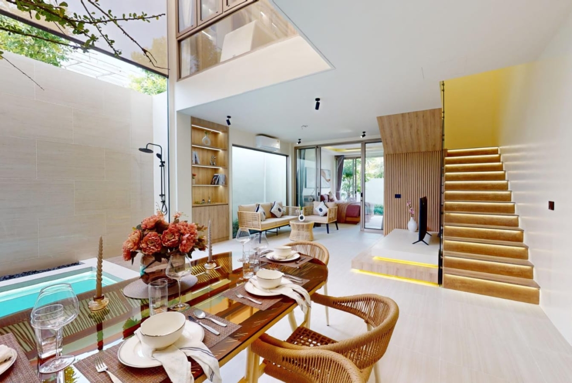 Located in the peaceful residential enclave of Srisoonthorn, Thalang, Prime Villas Srisoonthorn is an exclusive gated development of just 17 private pool villas, crafted for modern, comfortable living. These beautifully designed 3-bedroom pool villas in Phuket offer a sophisticated lifestyle with private pools, open-plan interiors, and premium finishes. Whether you’re seeking a full-time home, a vacation retreat, or an investment property, these villas offer excellent long-term value in a prime location. The two-storey villas feature 3 bedrooms and 4 bathrooms, along with smart layouts that balance elegance and functionality. Each home is fully furnished and ready to move in. Ideal for families or couples, these private pool villas in Thalang provide privacy, space, and convenience all in one package. Every villa comes with walk-in closets in all bedrooms, a fully equipped Western kitchen, covered parking for two cars, and a landscaped garden with a private swimming pool. The master suite includes a luxurious ensuite bathroom with a bathtub and direct pool views. Two additional bedrooms upstairs also have ensuite bathrooms and their own balconies for extra privacy and comfort. Prime Villas Srisoonthorn Pricing & Availability: Starting Price: THB 16,400,000 Plot Sizes: 173.58 – 381.11 sqm Built-up Area: 247.4 sqm Private Swimming Pool Ownership: Thai Freehold or Leasehold Furniture: Fully furnished (included in price) Key Property Features: 3 Bedrooms, all with ensuite bathrooms Walk-in closets in all bedrooms Open-plan living and dining area Guest powder room Western-style kitchen with full appliances Private swimming pool and sun terrace Covered parking for 2 cars Garden and balconies High ceilings and natural light throughout Two-storey design Community Features: 24-hour security and CCTV Clubhouse with fitness center Communal garden area Children’s playground Shared guest parking Payment Terms: Reservation: THB 200,000 Contract Signing (within 30 days): 35% Foundation Completion: 10% Structure Completion: 15% Windows & Doors Installation: 15% Interior Work Completion: 15% Ownership Transfer: 10% Additional Costs: Sinking Fund: THB 100,000 (one-time) Common Area Fee: THB 50/sqm/month (payable 2 years in advance) Utility Meter Installation: THB 20,000 Transfer Fees/Taxes: 75% buyer – 25% developer Location – Srisoonthorn, Thalang, Phuket: Set in a central yet peaceful area, Prime Villas Srisoonthorn is just 10 minutes from Heroines Monument and 20 minutes from Phuket International Airport. The location offers excellent access to international schools such as UWC Thailand and BIS, as well as popular shopping and lifestyle destinations like Robinson Lifestyle, Boat Avenue, and Porto de Phuket. For beach lovers, Bang Tao Beach and Layan Beach are only a short drive away, making these villas ideal for both daily living and tropical getaways. This is truly one of the best areas in Phuket for those looking to combine quality living with convenience and natural beauty. Contact ThaiEstate today to schedule a private viewing or receive the latest availability updates for these exceptional 3-bedroom pool villas in Phuket, located within the exclusive Prime Villas Srisoonthorn development.