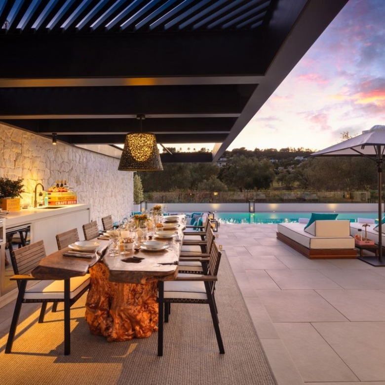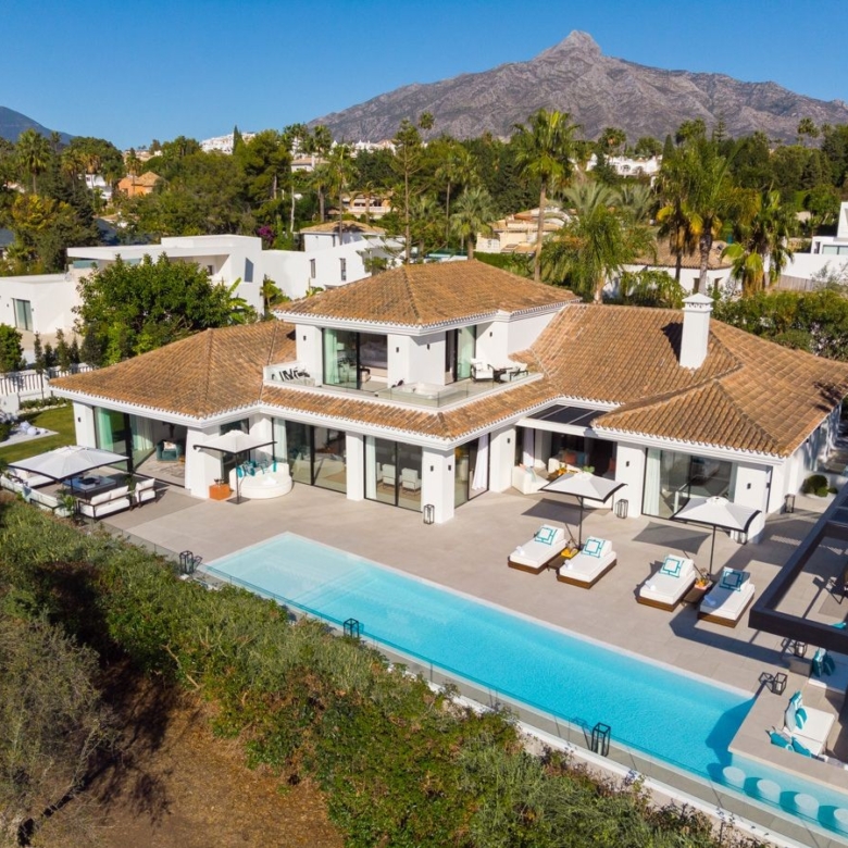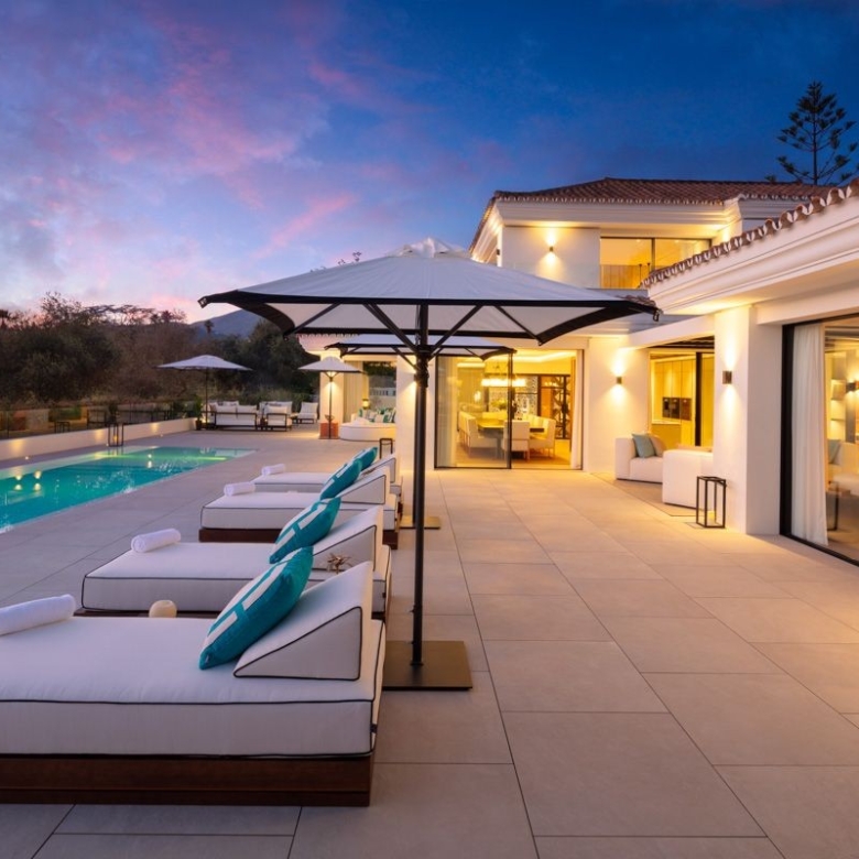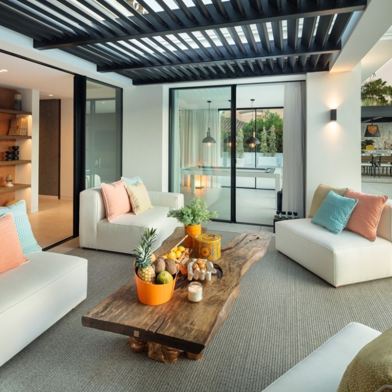 Stylish villa, recently refurbished to high standards boasting a prime frontline golf position, overlooking las Brisas Golf Course. The property is located in a quiet and private cul-de sac, walking distance to all the restaurants and cafés in Aloha and a 5 minutes’ drive to Golf courses and other amenities. This homely yet modern property flows very nicely between the indoor and outdoor living areas.