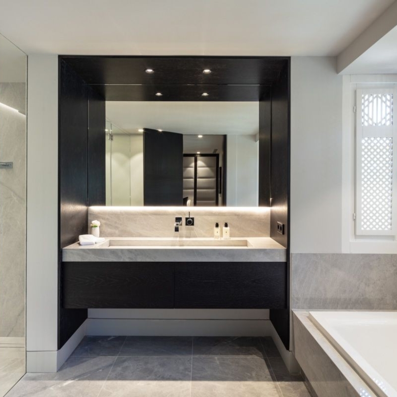 with walk-in shower and bathtub. Enjoy views to the Mediterranean as you soak in the