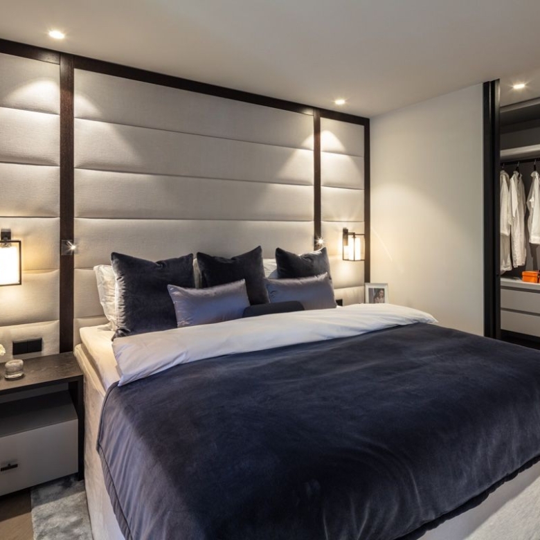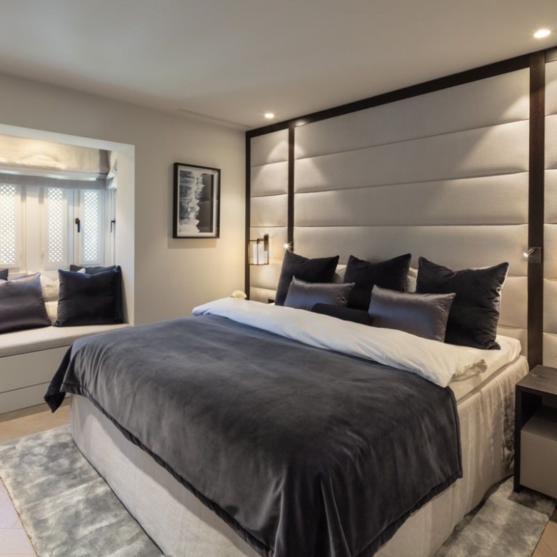 a neutral palette and luxurious fabrics to create a cosy and calm haven, this bedroom